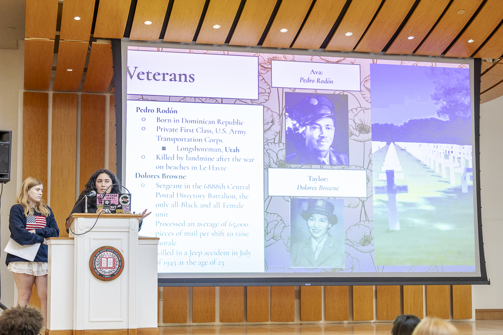 “I absolutely loved being able to share our experience with the freshmen!” said Casillas. “As somebody who wants to be a teacher, it gave me a peek into how I can best share my experiences in an informative and engaging way. I hope they were able to take away our message regarding the ways in which we choose to recall history, whether it be museum designs, modern technology, or cemeteries, especially when it comes to events as important as D-Day and World War II.”