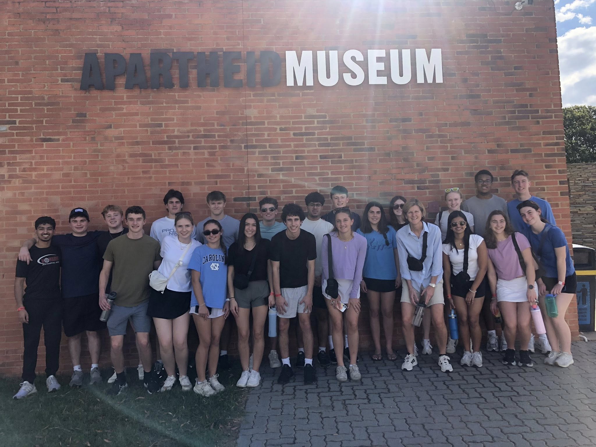 Upper School English Teacher Lynn Mittler was one of the three chaperones. She said, “This was a trip of a lifetime and I was thrilled to be able to return to South Africa 30 years later and see so much of the country. I was truly impressed with our students. Not only were they very reliable, making 4:35 a.m. depart times and more, but they truly engaged with the experience and immersed themselves in all that the trip had to offer. Watching them make connections to the work they had done in school or discovering new things was a rewarding experience that I did not anticipate. Additionally, all of the people we met in South Africa were remarkable human beings who were deeply invested in our group coming to understand all that South Africa has to offer. I believe we left with a sophisticated awareness of a country moving forward from a challenging past while caring for their vast natural resources. Nolan Clarke is a tremendous leader who generously shared his time and knowledge with us all.”