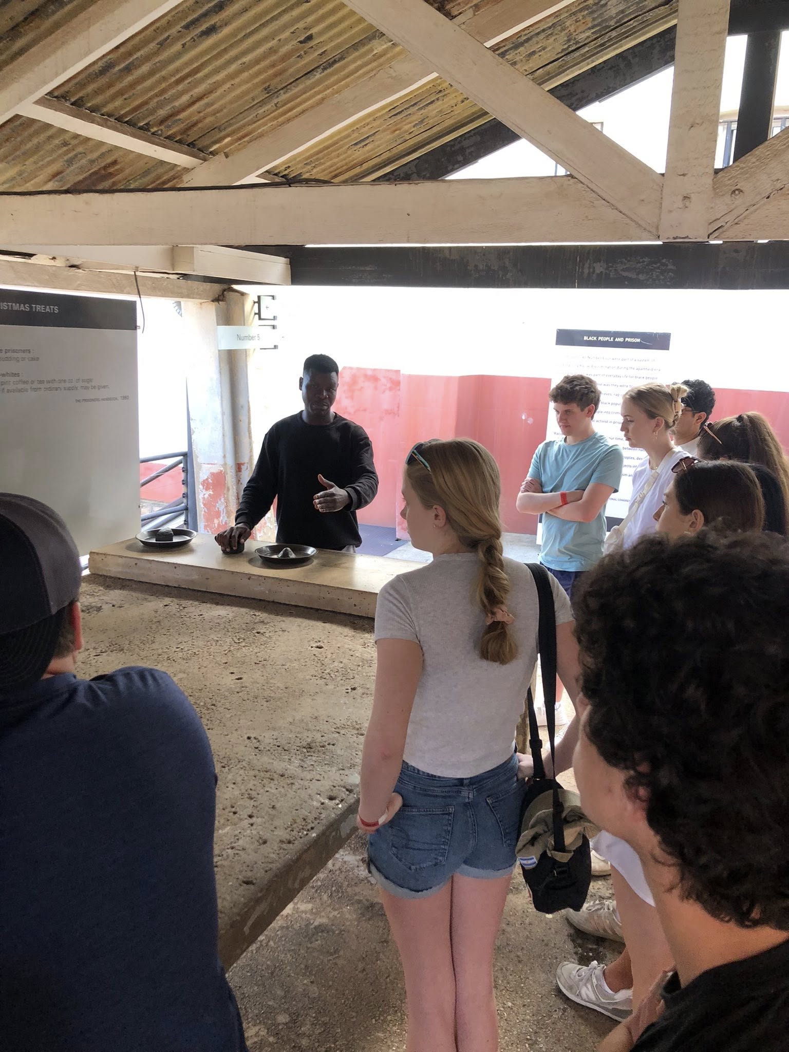 One of the most memorable parts of this trip and one of the things I enjoyed the most, was learning about the history of South Africa. We had always been taught in school about Jim Crow laws and segregation in the States, but we never learned about apartheid in other parts of the world. We had the opportunity on this trip, to go to both prisons where Mandela was held (and his cell on Robben Island) and the current courthouse. We also visited Soweto, where you see a significant amount of people living in extreme poverty, in tin shacks across a plot of land. It was so heartbreaking to see how current poverty in South Africa ties to the decades of oppression the people faced. It was also crazy to learn about things I had never heard of, like the District Six demolition and the Soweto school uprisings. Additionally, having the opportunity to hear someone’s firsthand experience of being imprisoned on Robben Island was truly something I would’ve never imagined having the opportunity to do. I have always loved history, so taking four days out of this trip to truly dive into the history of a country I had never really learned about before was amazing and extremely eye-opening. In going to the Gold Restaurant, I felt so immersed in the South African Cape culture. This was my favorite night of the trip, and it opened my eyes to how amazing it is to be able to learn about new cultures and be a part of them. Before this, I knew little about South Africa. However, after this dinner, I learned about 14 different types of cuisine across Africa, the traditions they have, their traditional clothing, and the musical aspect of their culture. This made me realize the significance, importance, and amazing opportunity that everyone as humans should take to understand cultures that are foreign to them, to become more connected to one another. I think that’s something really valuable that I am going to be taking with me when I go back home, and when I travel again.