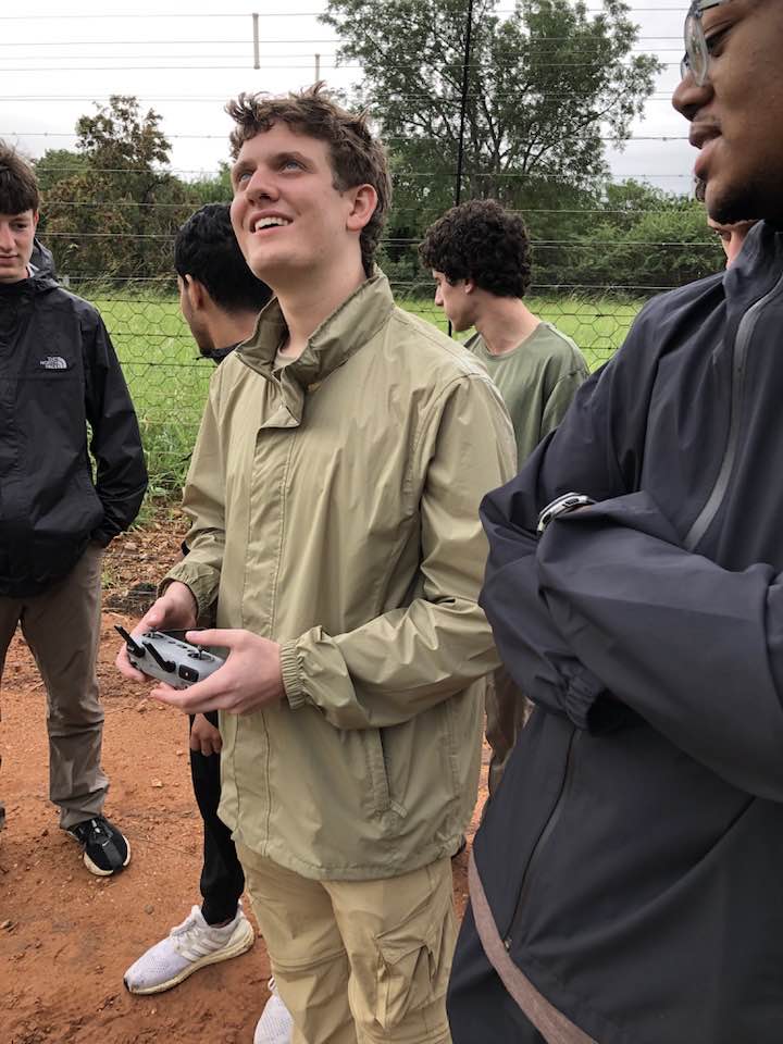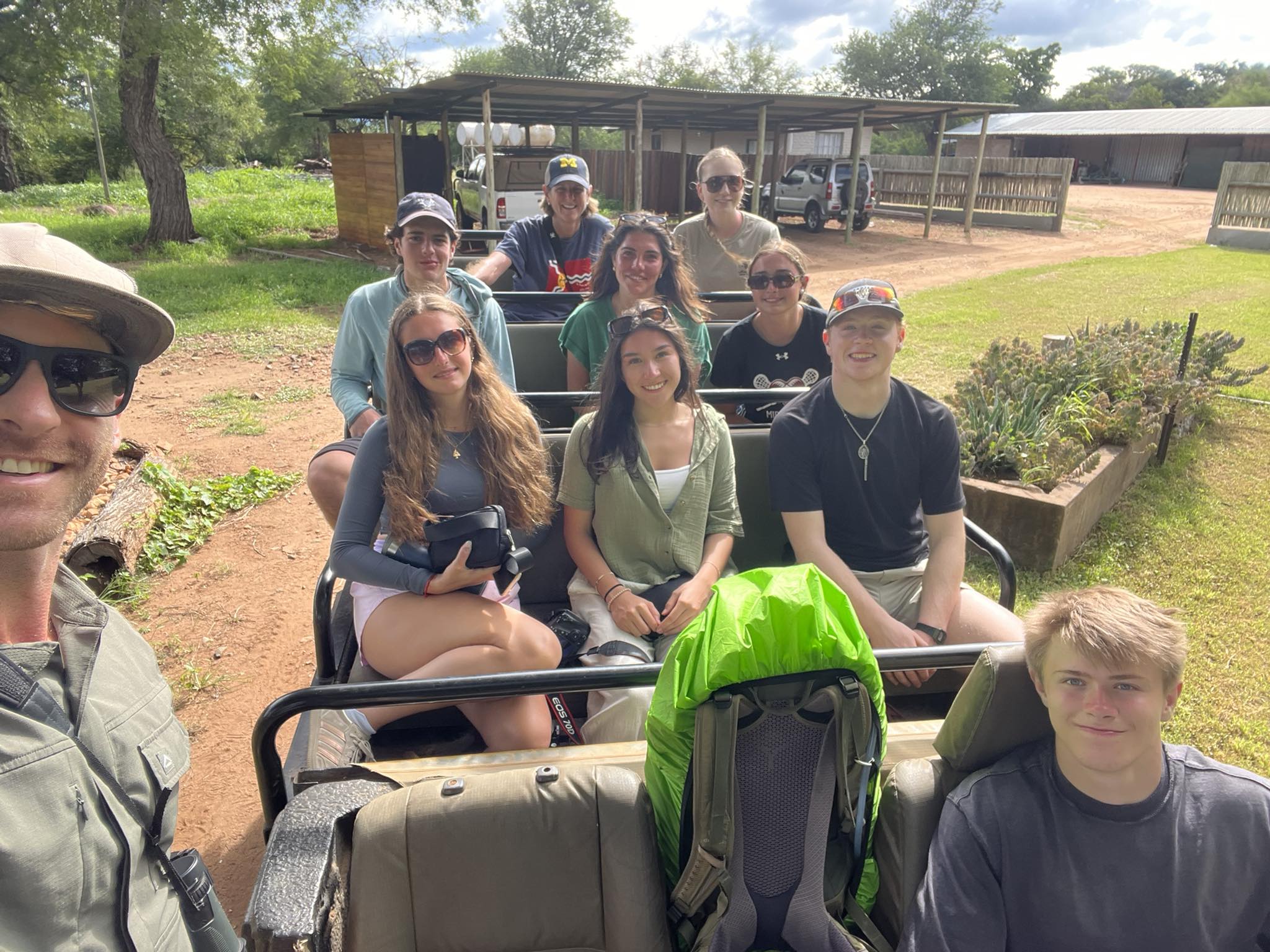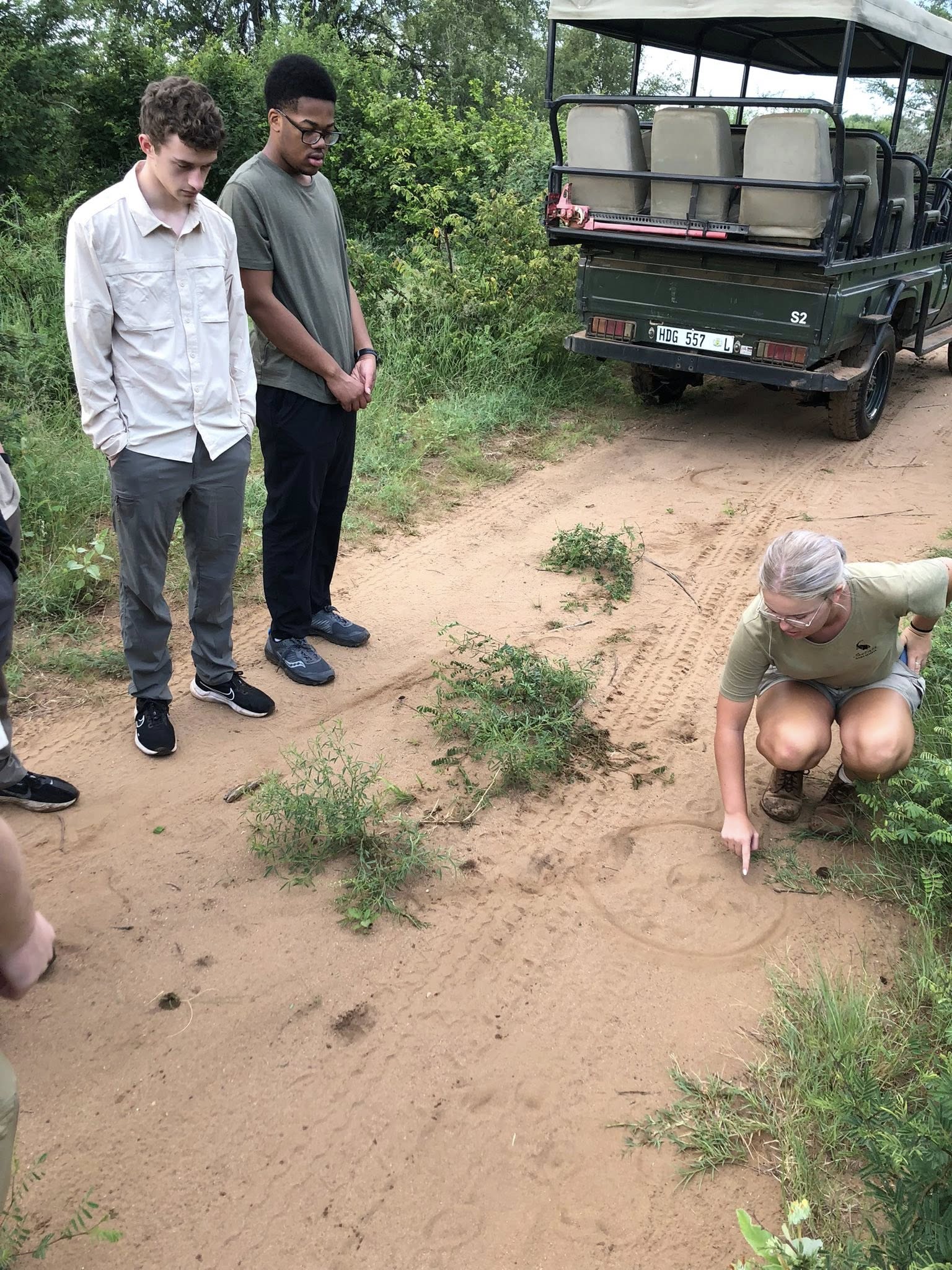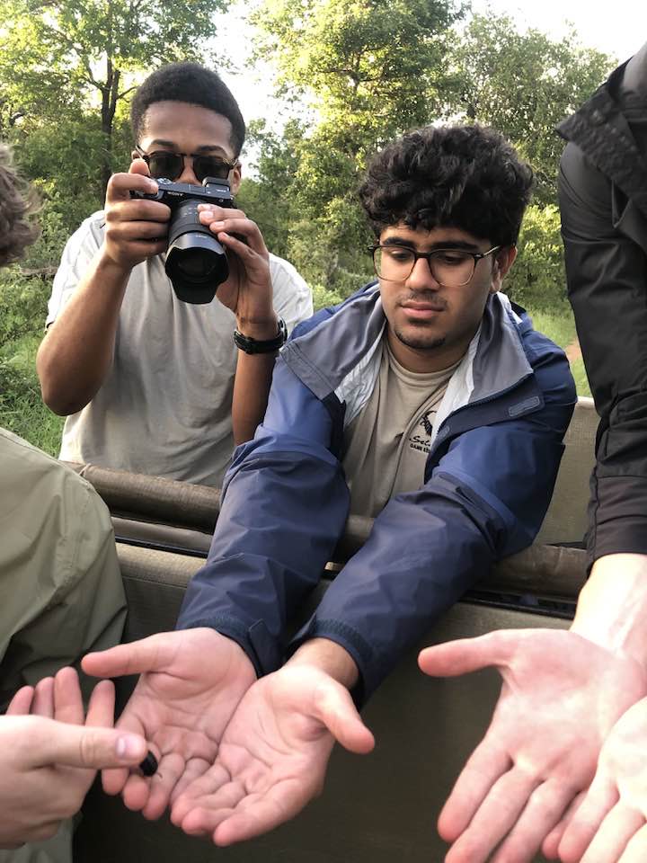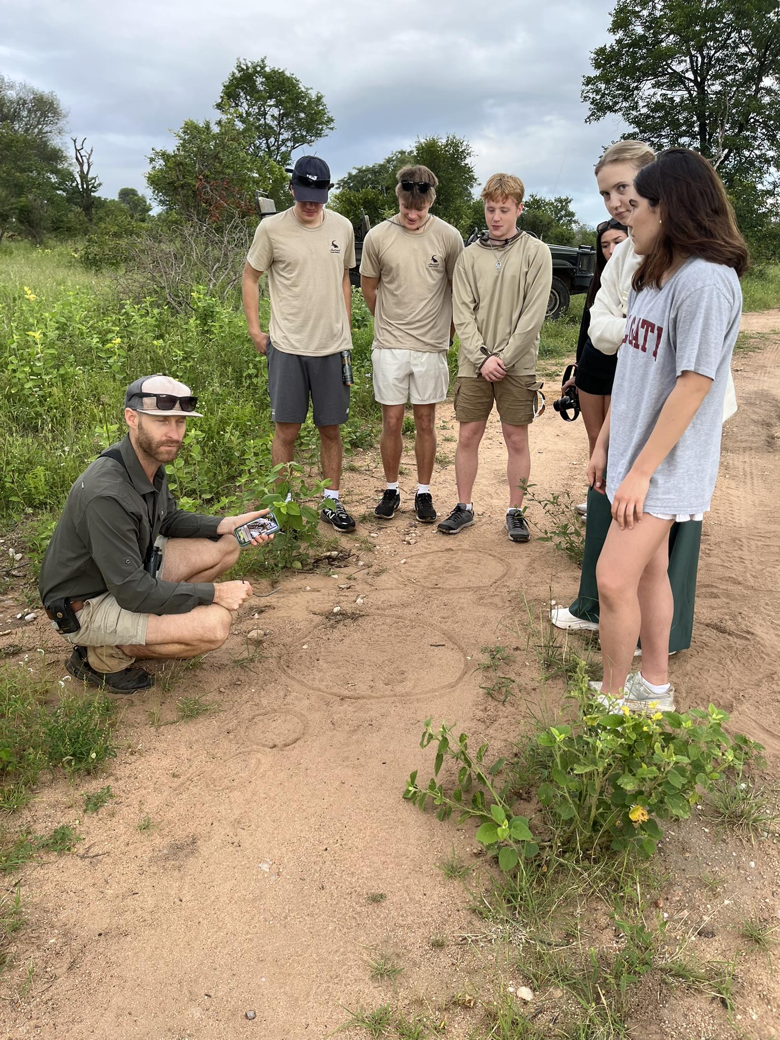 After all these sights, the group completed a more pedestrian task: visiting a supermarket to pick up snacks for the next stage: staying at the Selati Game Reserve. There, students learned how to track animals. They also learned about a camera trapping project and drone monitoring, enjoying research drives to collect data. Lewis Adkins ’26 enjoyed a rare moment. “One of my favorite experiences was seeing a cheetah less than ten feet away from me,” he said. “Our guide mentioned that this had never happened to her before, making it a true once-in-a-lifetime moment, especially meaningful to share with friends.” Although their time at Selati wound up dampened by rain, students were able to conduct research drives for key species monitoring and learn from wildlife managers about the reserve itself and conservation. They saw elephants, giraffes, cheetahs, lions, impala, warthogs, and dung beetles.