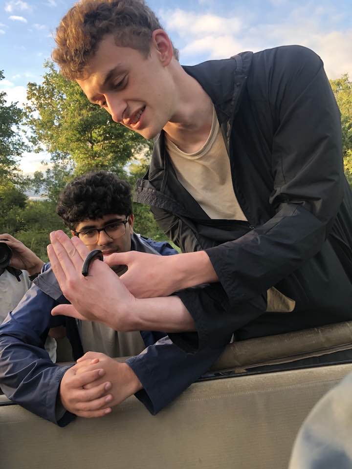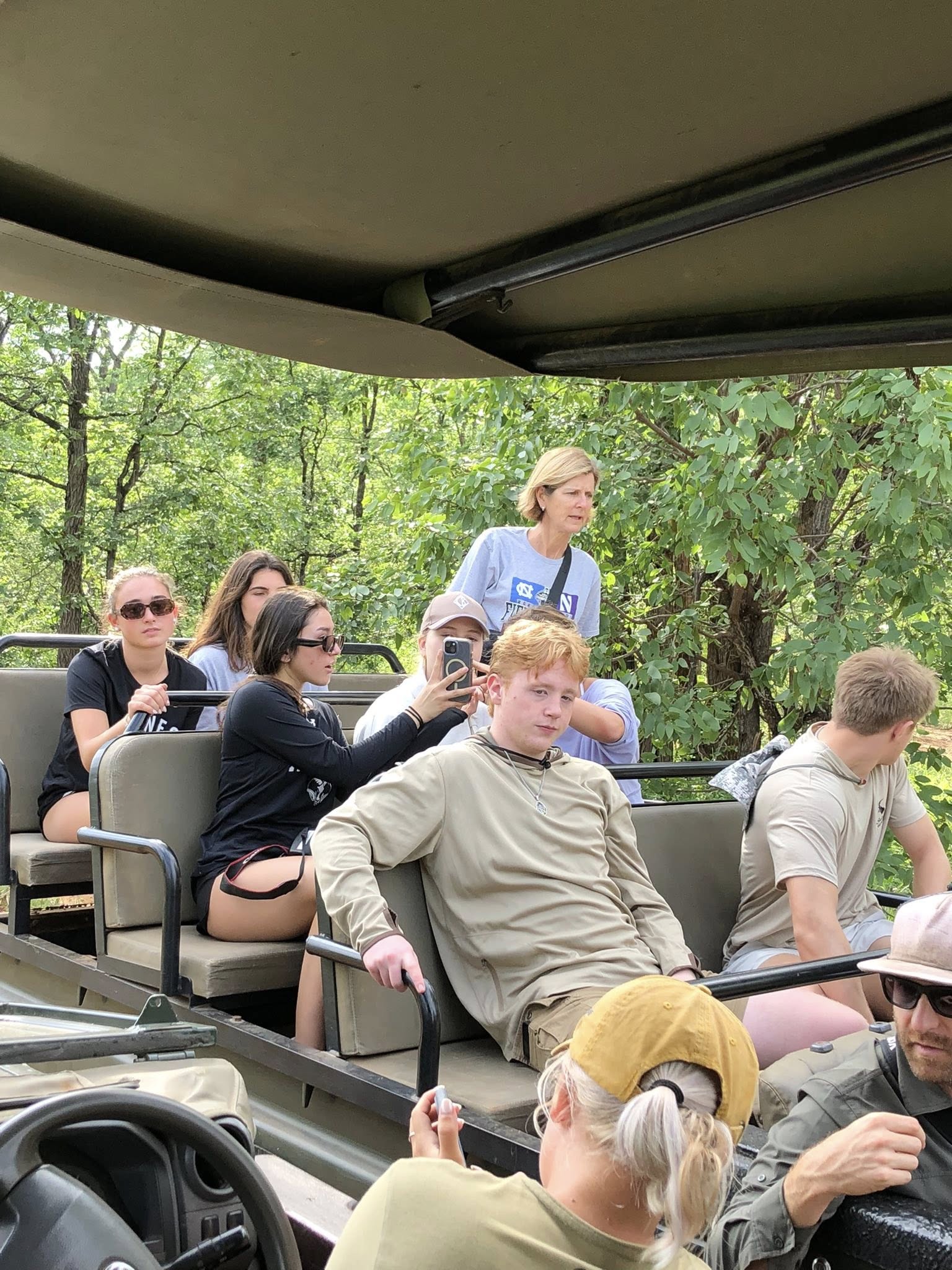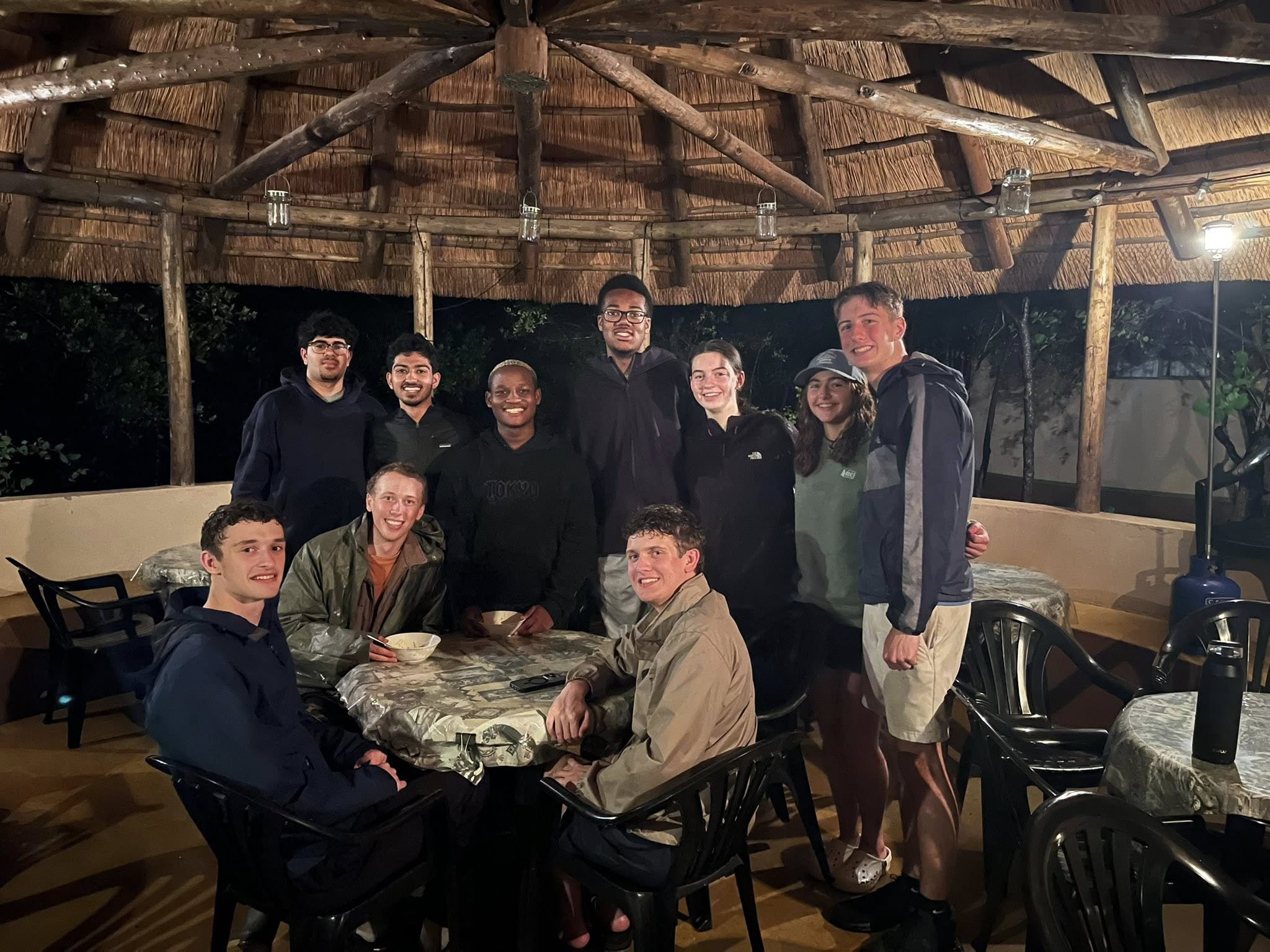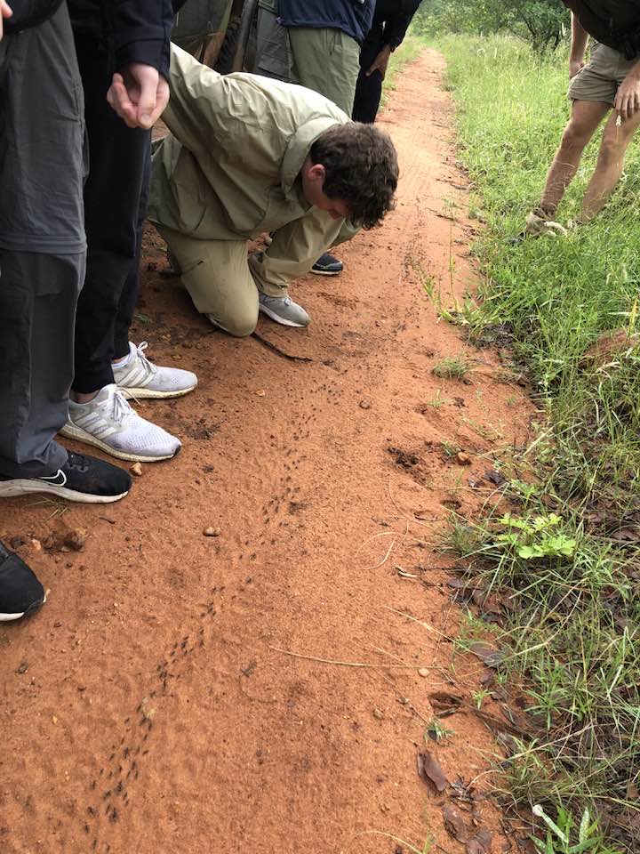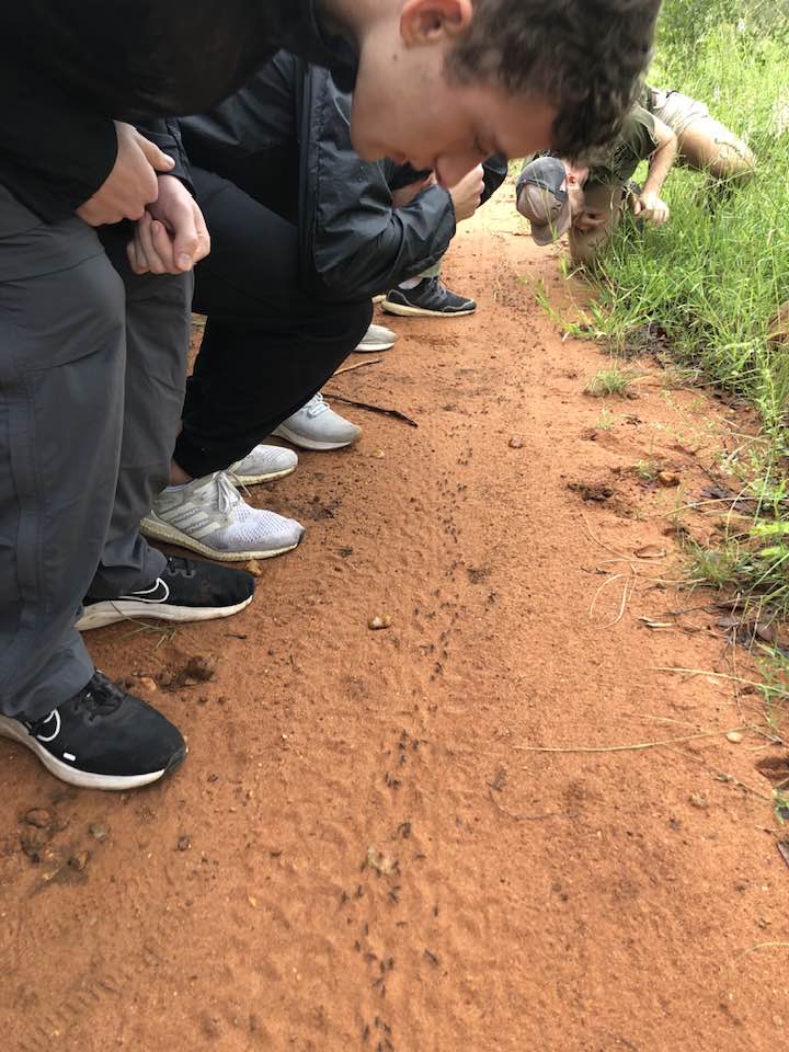 After all these sights, the group completed a more pedestrian task: visiting a supermarket to pick up snacks for the next stage: staying at the Selati Game Reserve. There, students learned how to track animals. They also learned about a camera trapping project and drone monitoring, enjoying research drives to collect data. Lewis Adkins ’26 enjoyed a rare moment. “One of my favorite experiences was seeing a cheetah less than ten feet away from me,” he said. “Our guide mentioned that this had never happened to her before, making it a true once-in-a-lifetime moment, especially meaningful to share with friends.” Although their time at Selati wound up dampened by rain, students were able to conduct research drives for key species monitoring and learn from wildlife managers about the reserve itself and conservation. They saw elephants, giraffes, cheetahs, lions, impala, warthogs, and dung beetles.