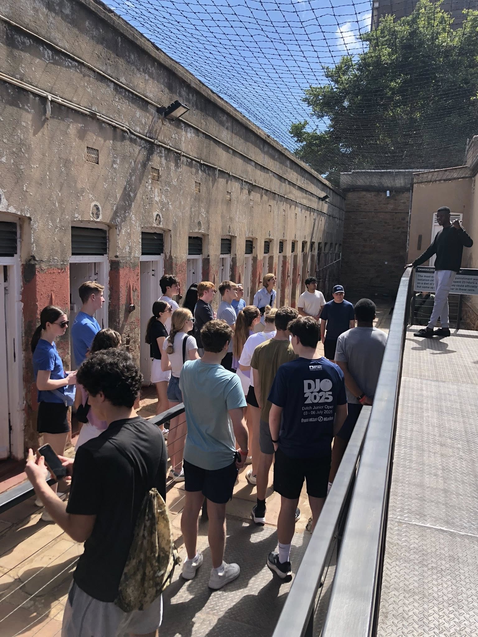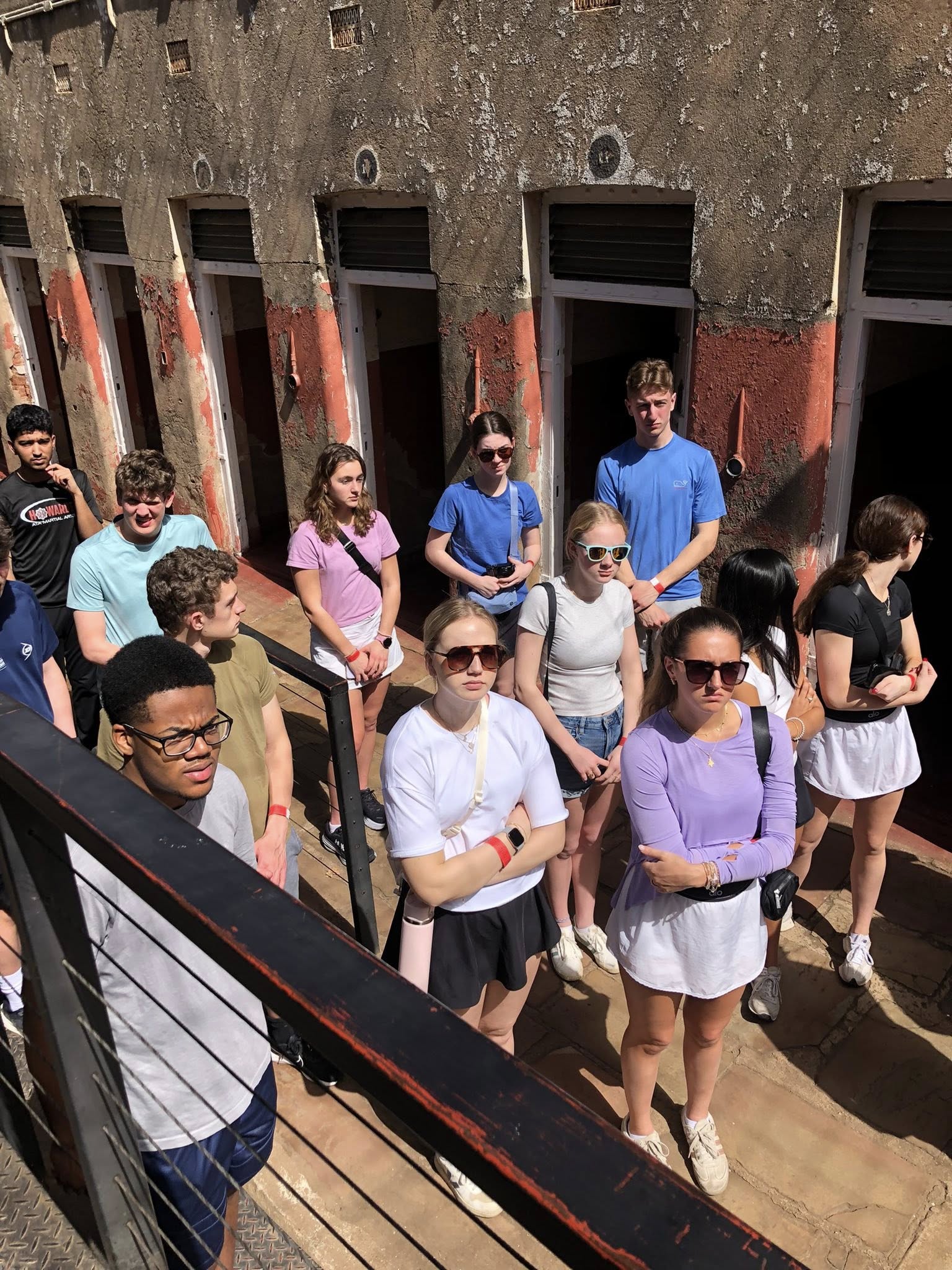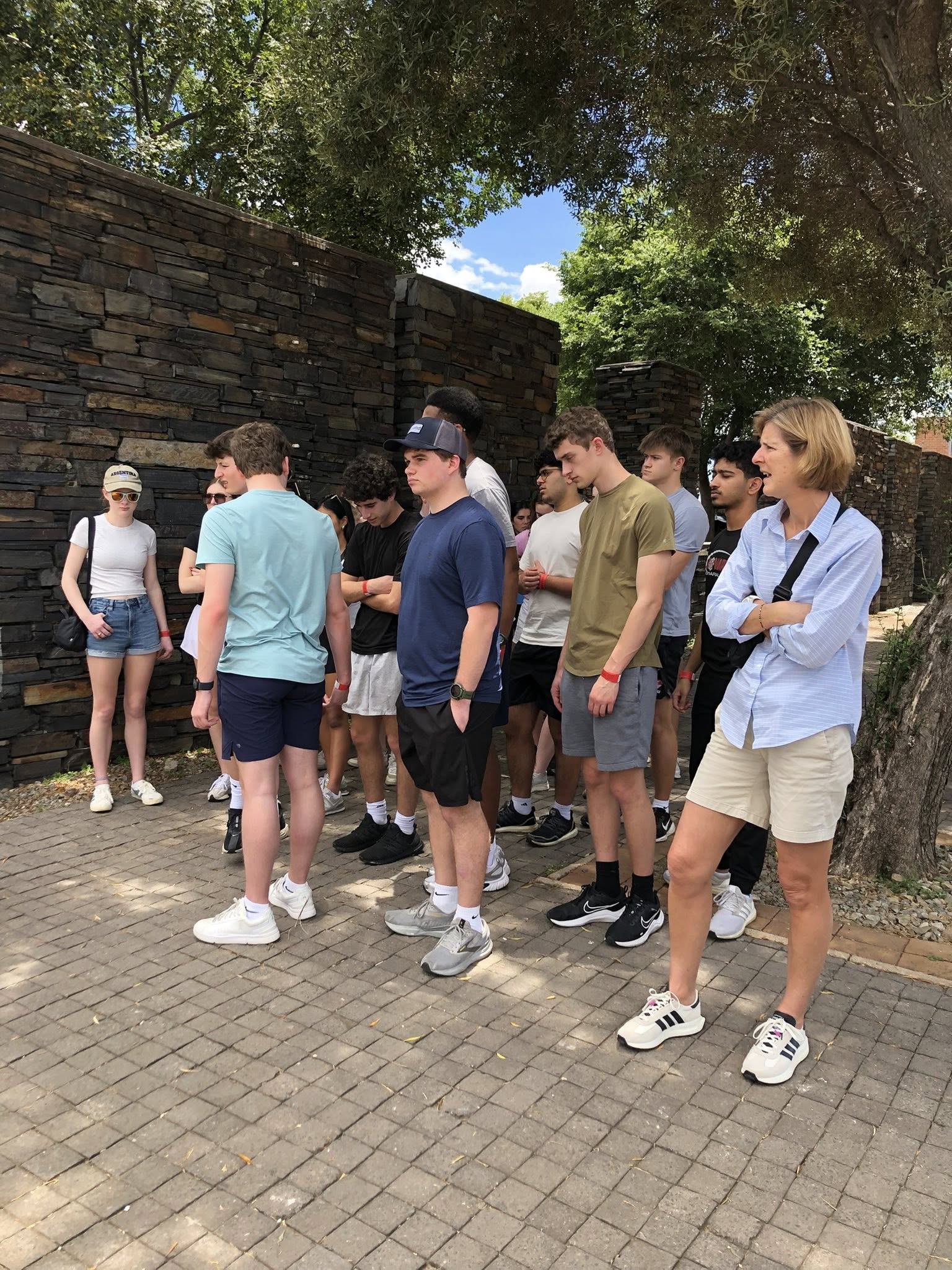 After landing in Johannesburg, the group hit the ground running. “Penitentiary, goats, the odd cow, and the high court. That pretty much sums up our day,” chaperone and Middle School Science Teacher Nolan Clarke posted. The group started at Constitutional Hill before making their way to Soweto (an acronym of South Western Township and an area near Johannesburg set aside by the government for Blacks in the 1920s that eventually experienced civil unrest during Apartheid) before finishing up at the Apartheid Museum. “I liked visiting the High Court in Johannesburg and learning about judicial process in South Africa,” wrote Bella Anadkat ’26.