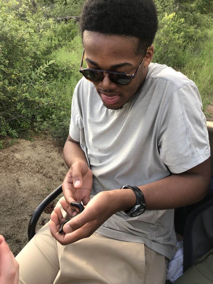 This trip has been the most amazing part of high school for me. I travel a lot, but this was the first time that I did not want to go back to St. Louis at any moment in the trip. Some of my favorite moments of the trip were going to a rugby game in Cape Town and seeing the landscapes, penguins, and monkeys throughout Cape Town. The most memorable part of Selati, the game reserve area where we lived for a week, was seeing dung beetles fight each other over dung balls, and being just a few feet away from lions, elephants, and giraffes. One of the biggest surprises for me was seeing the contrast between Sandton City and Soweto in Johannesburg, where Sandton City is the richest part of Johannesburg, and just a few miles from there is Soweto, which is the poorest part of South Africa. It was shocking how the living condition extremes just a few miles away from each other. Mr. Fitz, Mr. Clarke, and Ms. Mittler chaperoned this trip, and orracstarted this amazing trip, and no matter how much it rained, it was an amazing experience. This was the most amazing trip I have ever been on, and for anyone thinking about whether they want to go or not when the time comes again, I would immediately say yes because this is a trip of a lifetime.