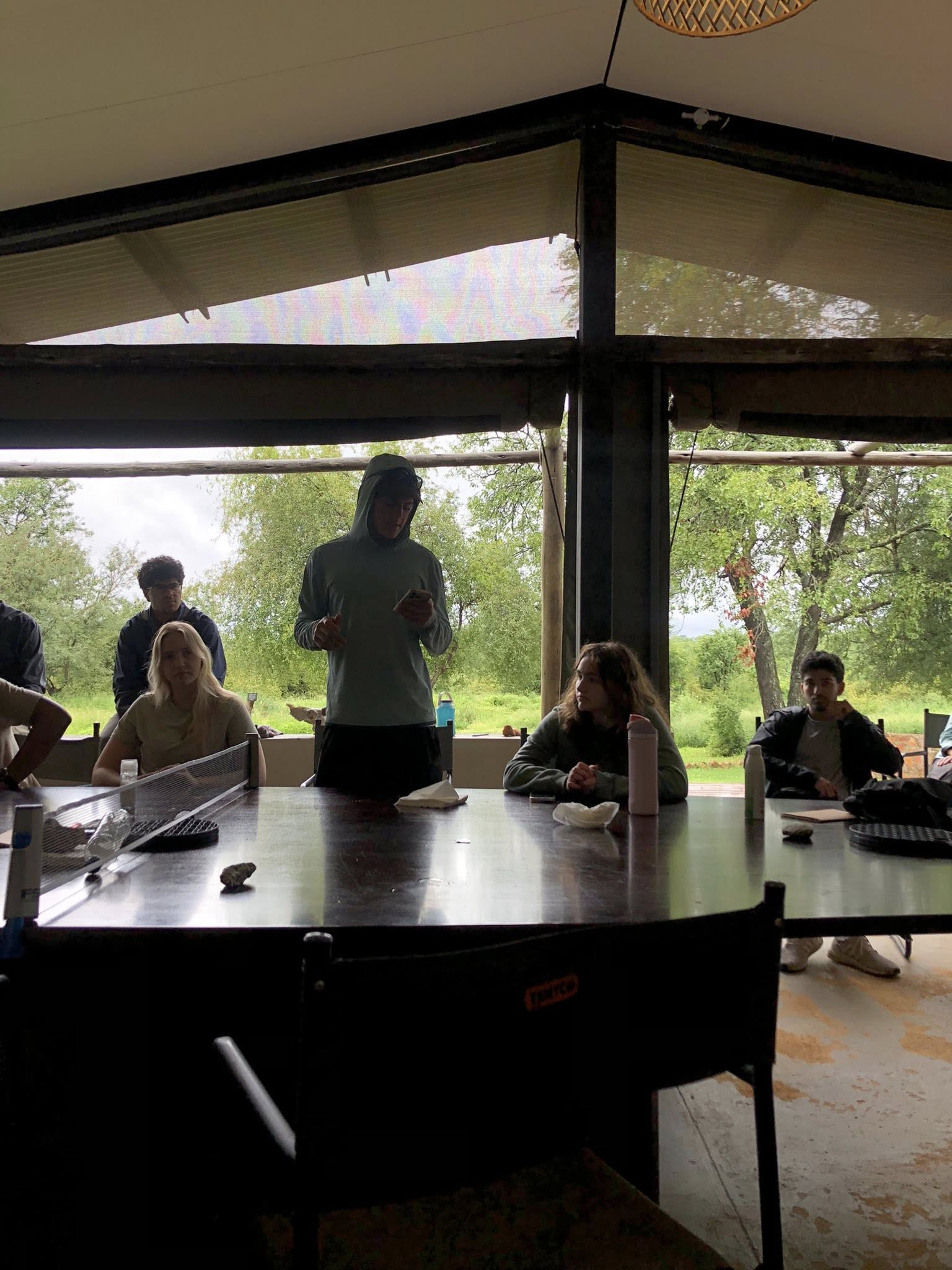 The rains headed in, but our travelers’ spirits were not dampened! They learned how to process their data and enjoyed playing games with each other. “I learned a ton about South African history and culture,” said Zach Withington ’26. “This trip was definitely one of the best experiences I have ever had. My favorite part about it was being able to live out in a game reserve for six days and even though it rained for half the time, we still got so much out of it. If I got the chance to do it again, I would.”