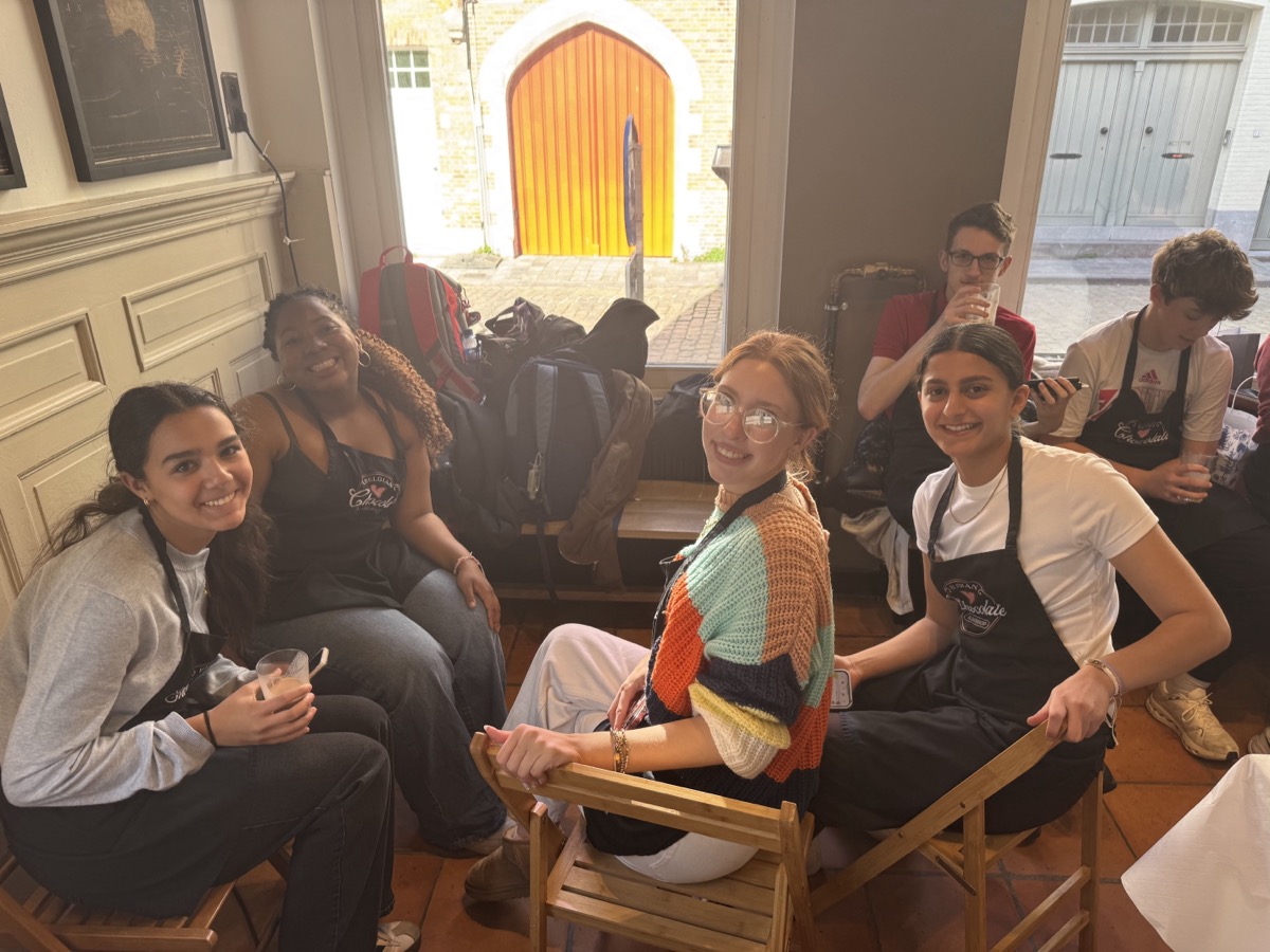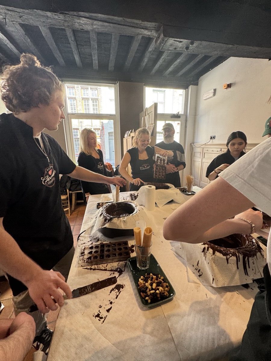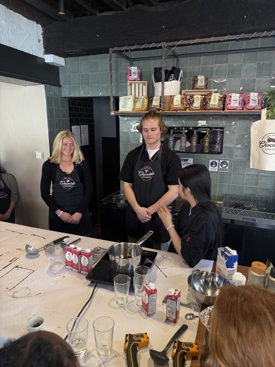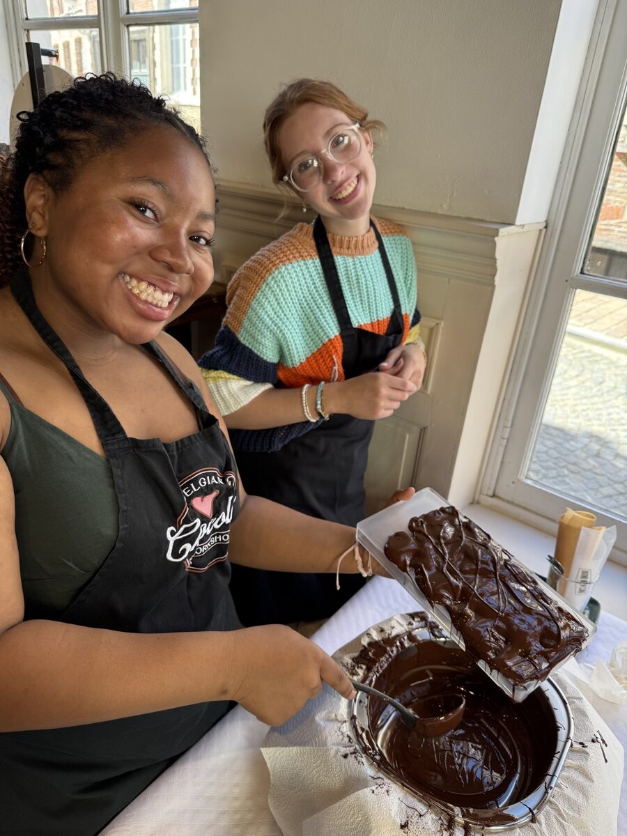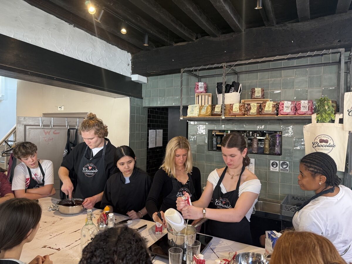 In Ghent, they met with locals to see how this city takes contemporary issues to heart and embraces sustainable development goals. Then they hopped a train from Ghent to Bruges for the day to explore the picturesque streets and canals of the city. Once back in Ghent, they connected with a professor from the College of Europe and ended the day with a praline chocolate workshop and tasting before turning their sights to traveling to the Netherlands the next day.