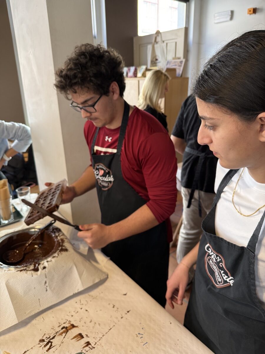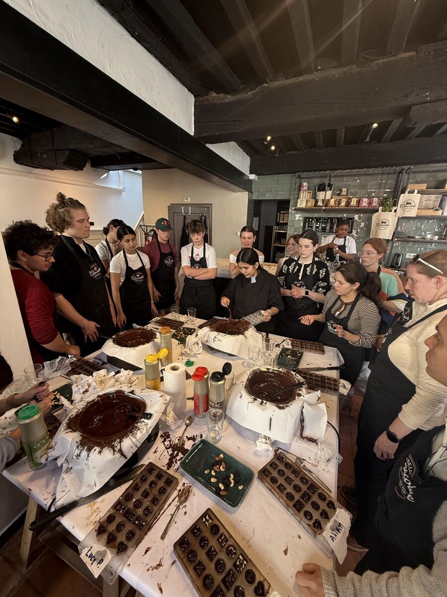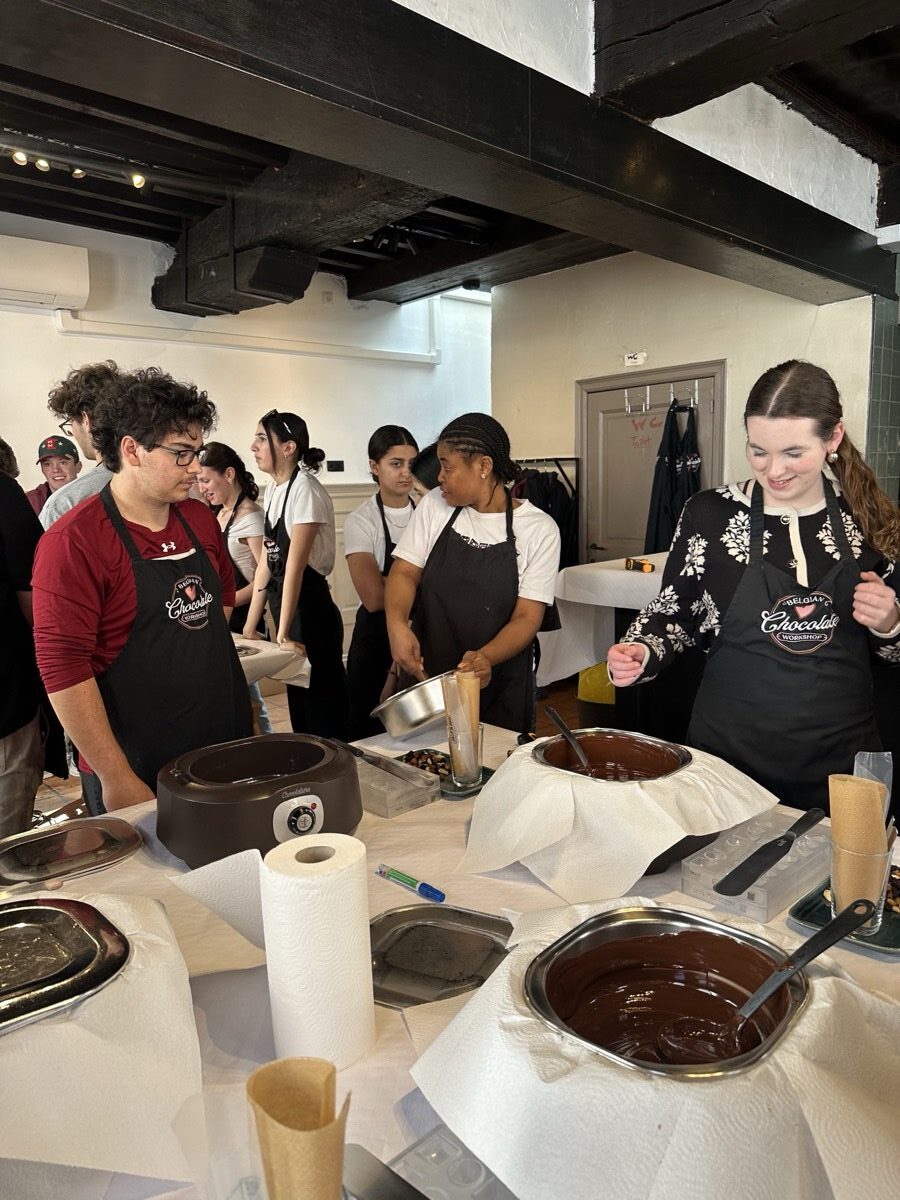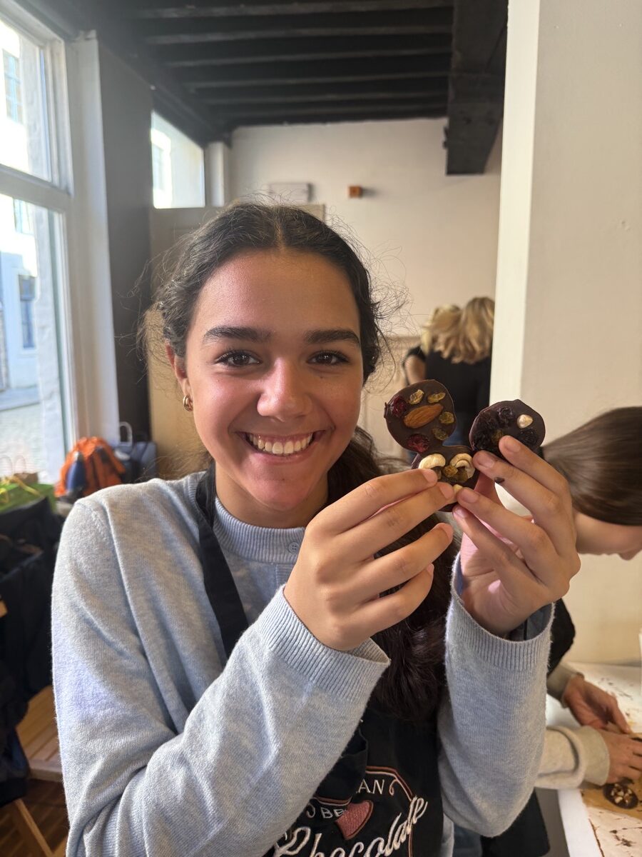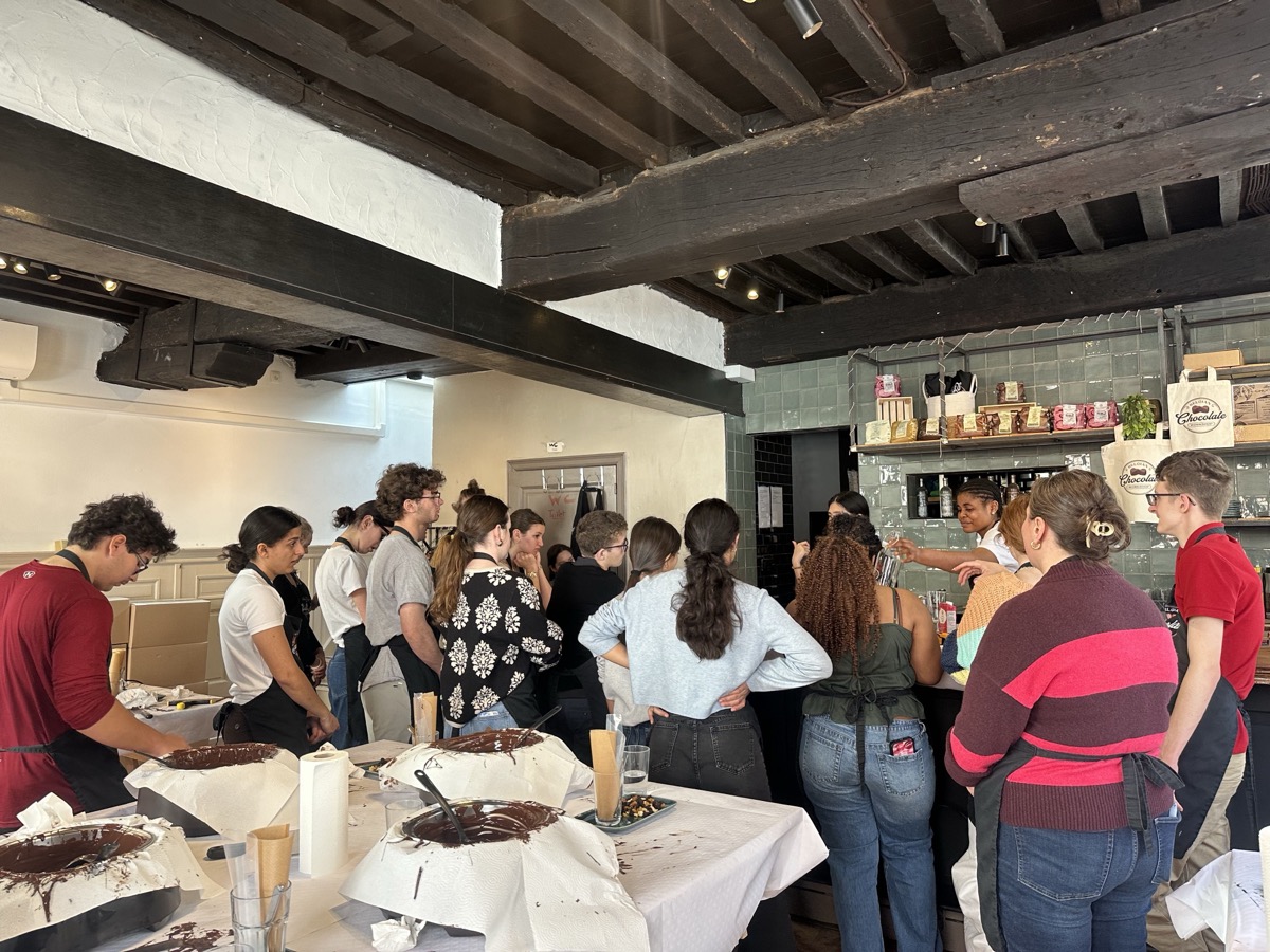 In Ghent, they met with locals to see how this city takes contemporary issues to heart and embraces sustainable development goals. Then they hopped a train from Ghent to Bruges for the day to explore the picturesque streets and canals of the city. Once back in Ghent, they connected with a professor from the College of Europe and ended the day with a praline chocolate workshop and tasting before turning their sights to traveling to the Netherlands the next day.