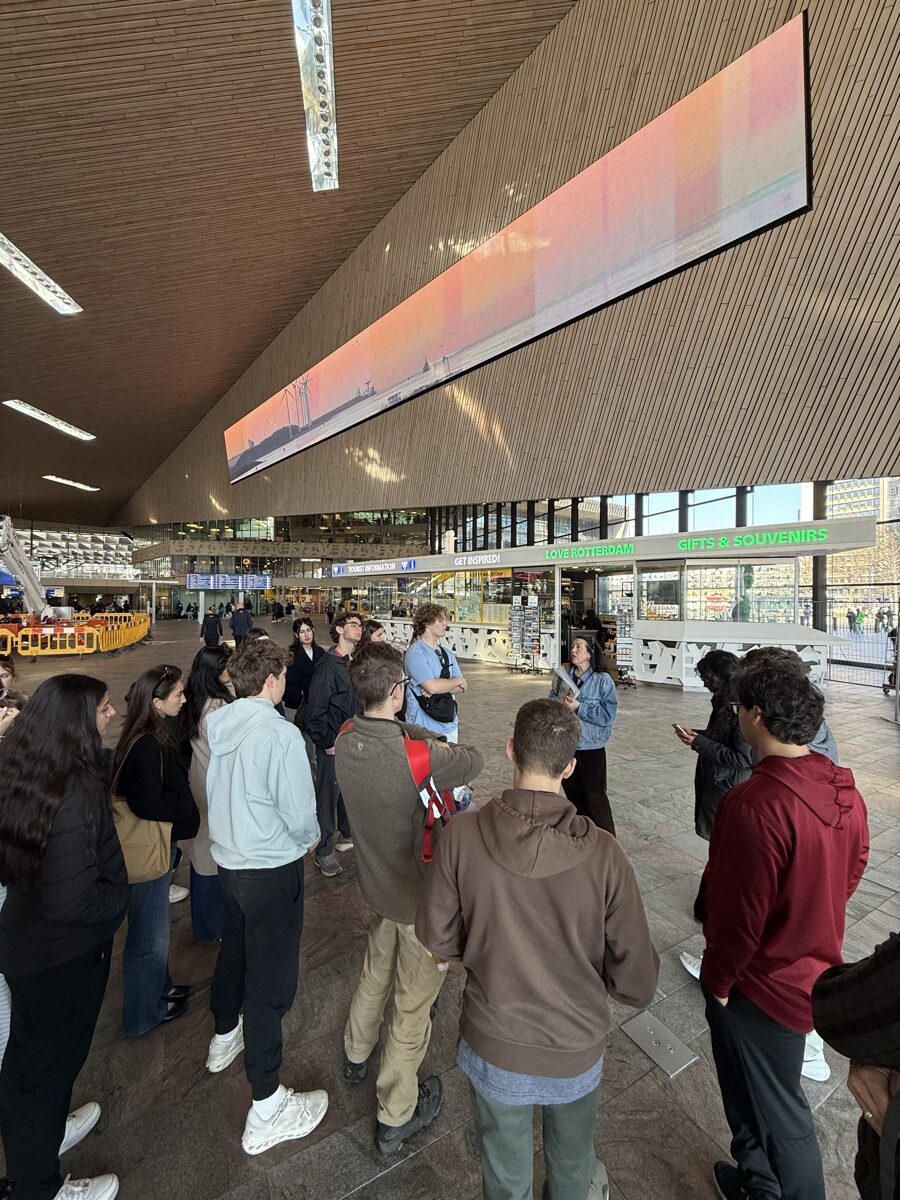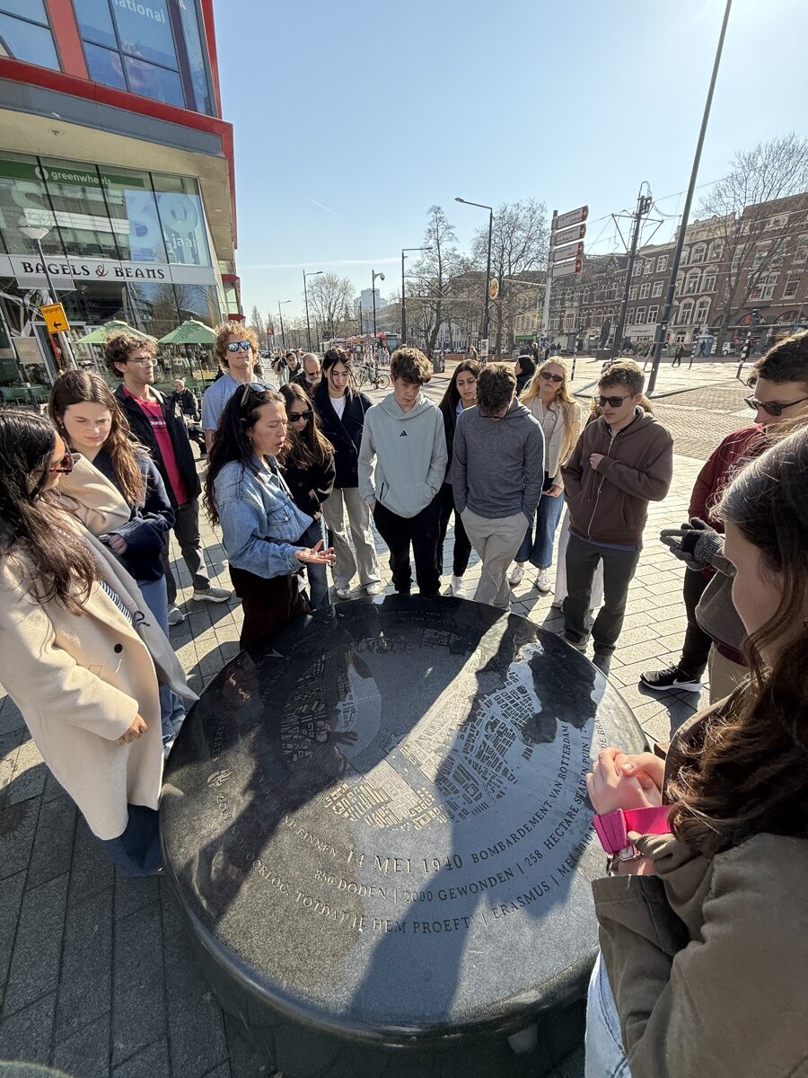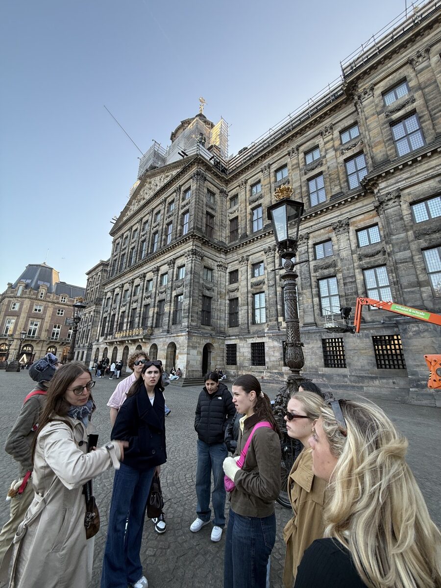 The next day, students grabbed a quick regional train from Rotterdam to Den Haag before touring the city, stopping at key historic sites, and taking in views along the coast. They visited the Peace Palace and the International Court of Justice and explored what makes Den Haag the legal capital of the world. Next was a visit to the Mauritshuis Art Museum for a guided tour, including a deep dive into the meaning of Vermeer’s Girl with a Pearl Earring.