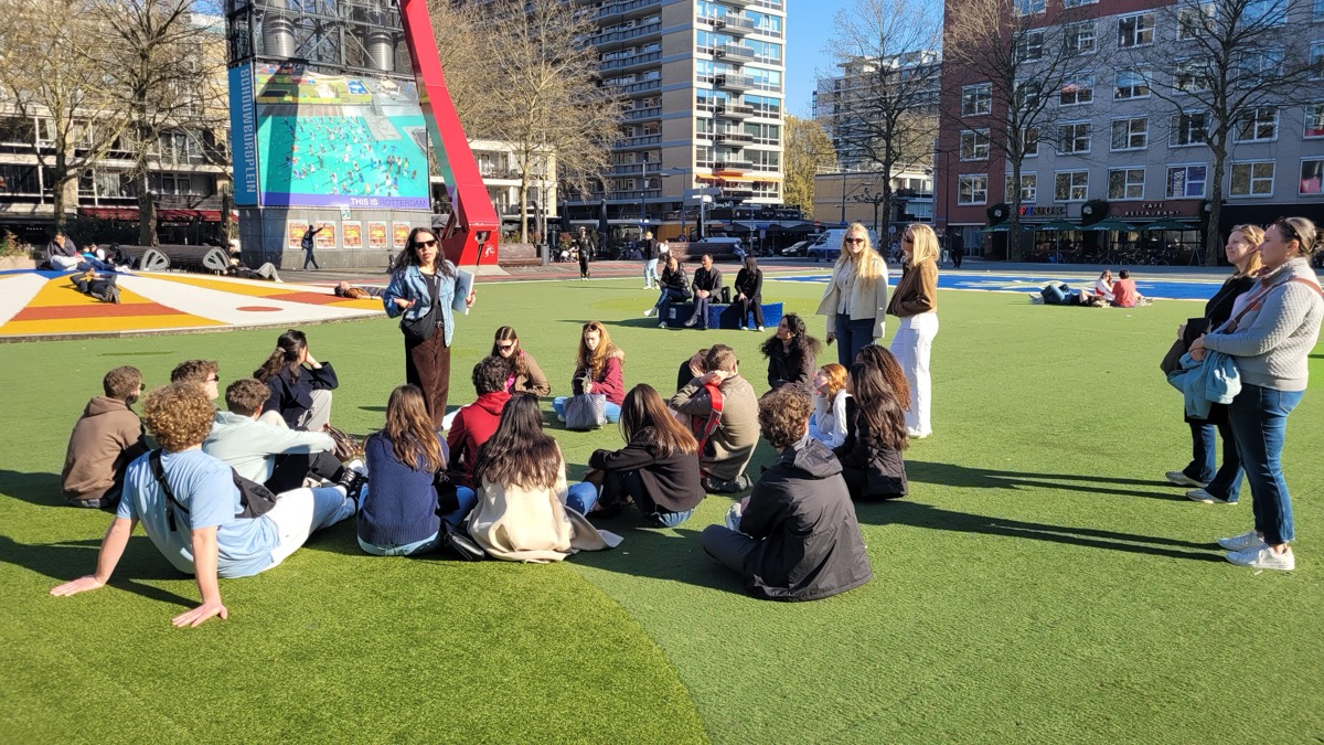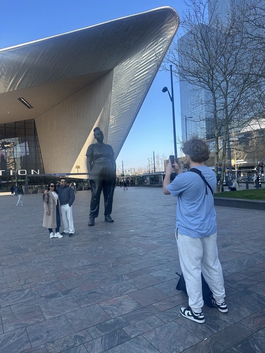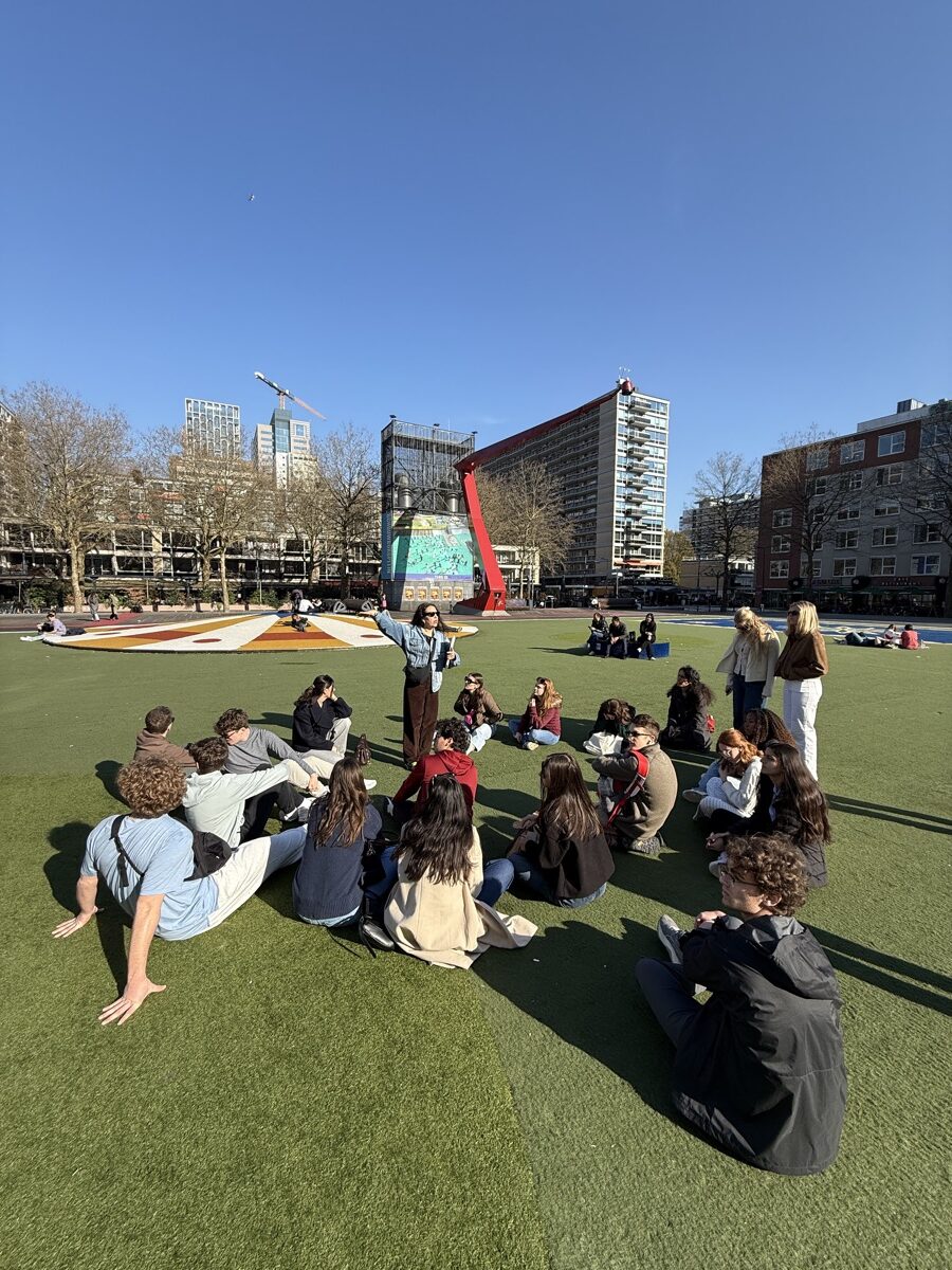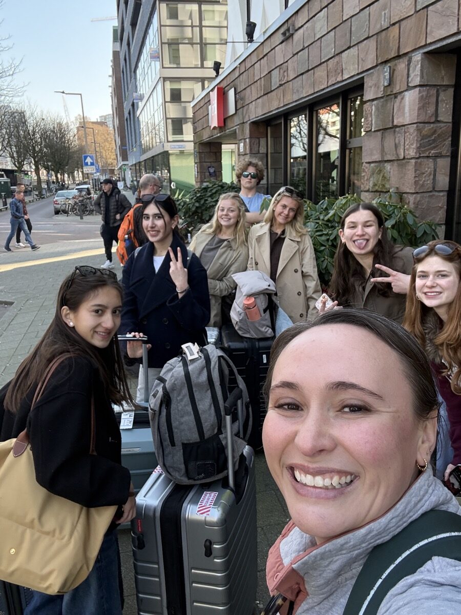 The next day, students grabbed a quick regional train from Rotterdam to Den Haag before touring the city, stopping at key historic sites, and taking in views along the coast. They visited the Peace Palace and the International Court of Justice and explored what makes Den Haag the legal capital of the world. Next was a visit to the Mauritshuis Art Museum for a guided tour, including a deep dive into the meaning of Vermeer’s Girl with a Pearl Earring.