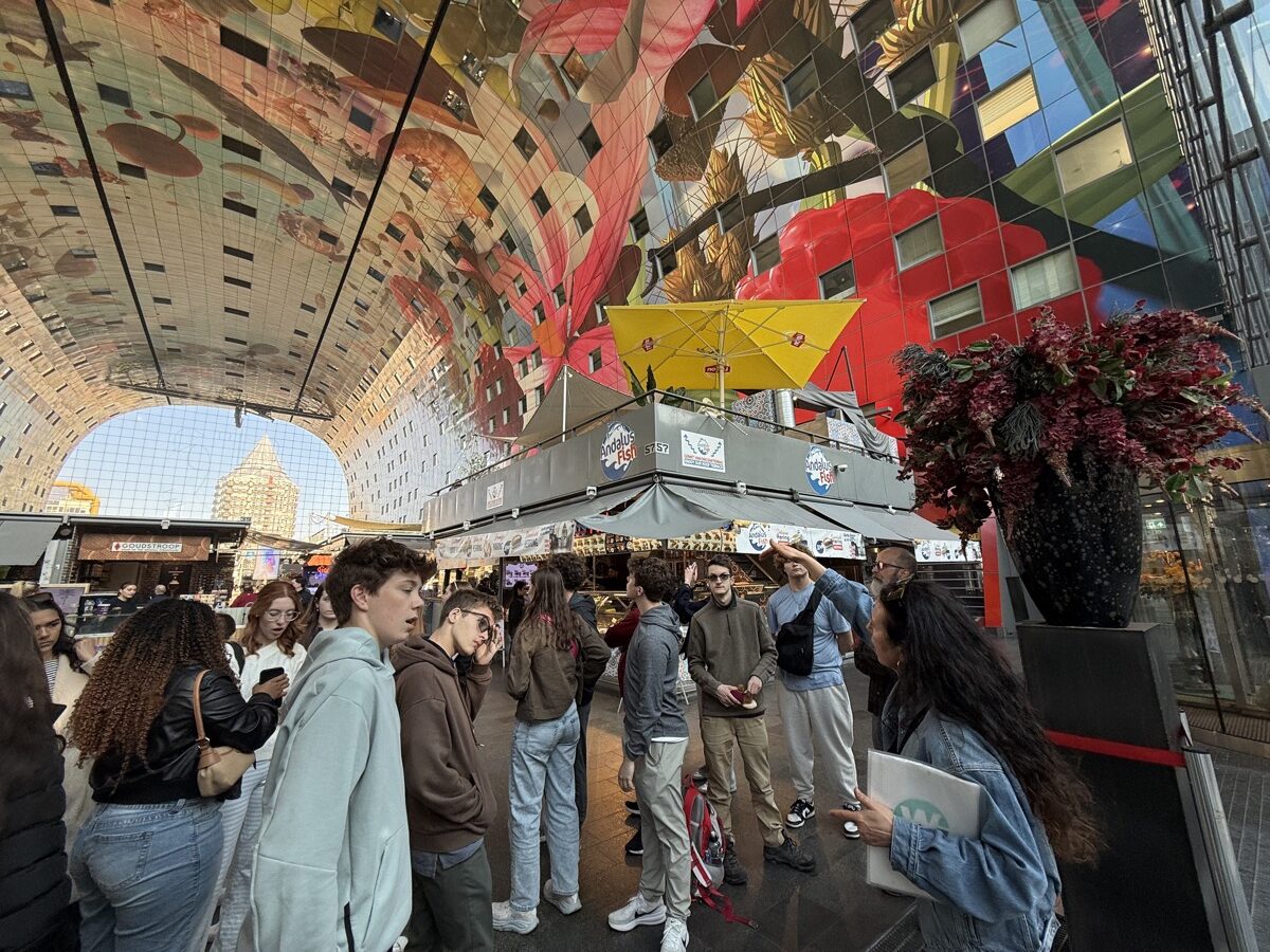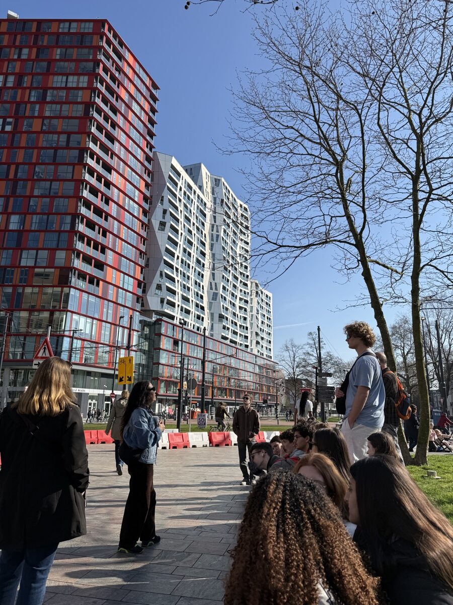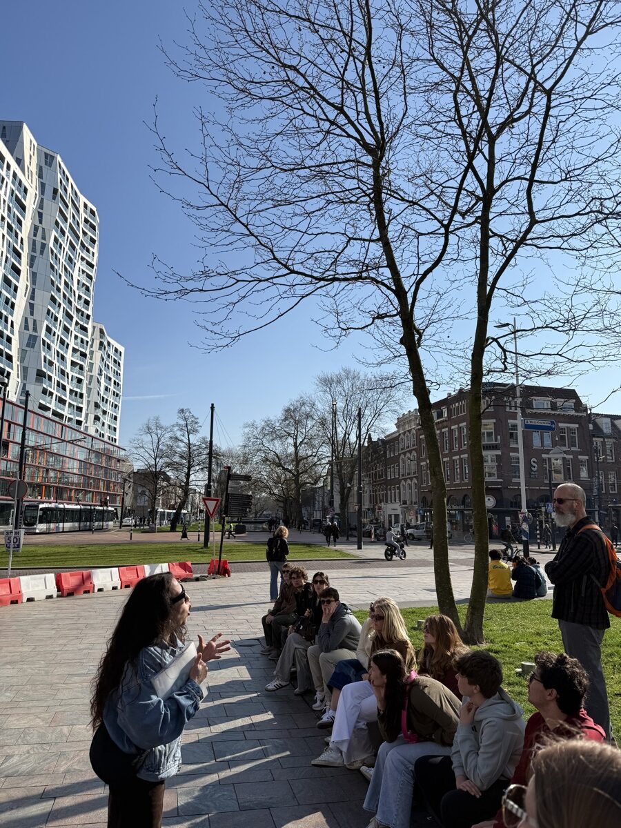 On a morning train, students crossed the border into the Netherlands, where they spent time unpacking Rotterdam’s history with a local guide. Reconstructed after losing up to 90% of the city center in a single WWII bombing, Rotterdam offered an eye-opening experience to explore the city’s unique architecture and forward-thinking urban planning. Today, Rotterdam has become a hub for startups, and our students enjoyed the exciting opportunity to connect with local leaders. The day concluded with an Indonesian Rijsttafel, a traditional meal that reflects the complex history of colonization and migration between Indonesia and the Netherlands.