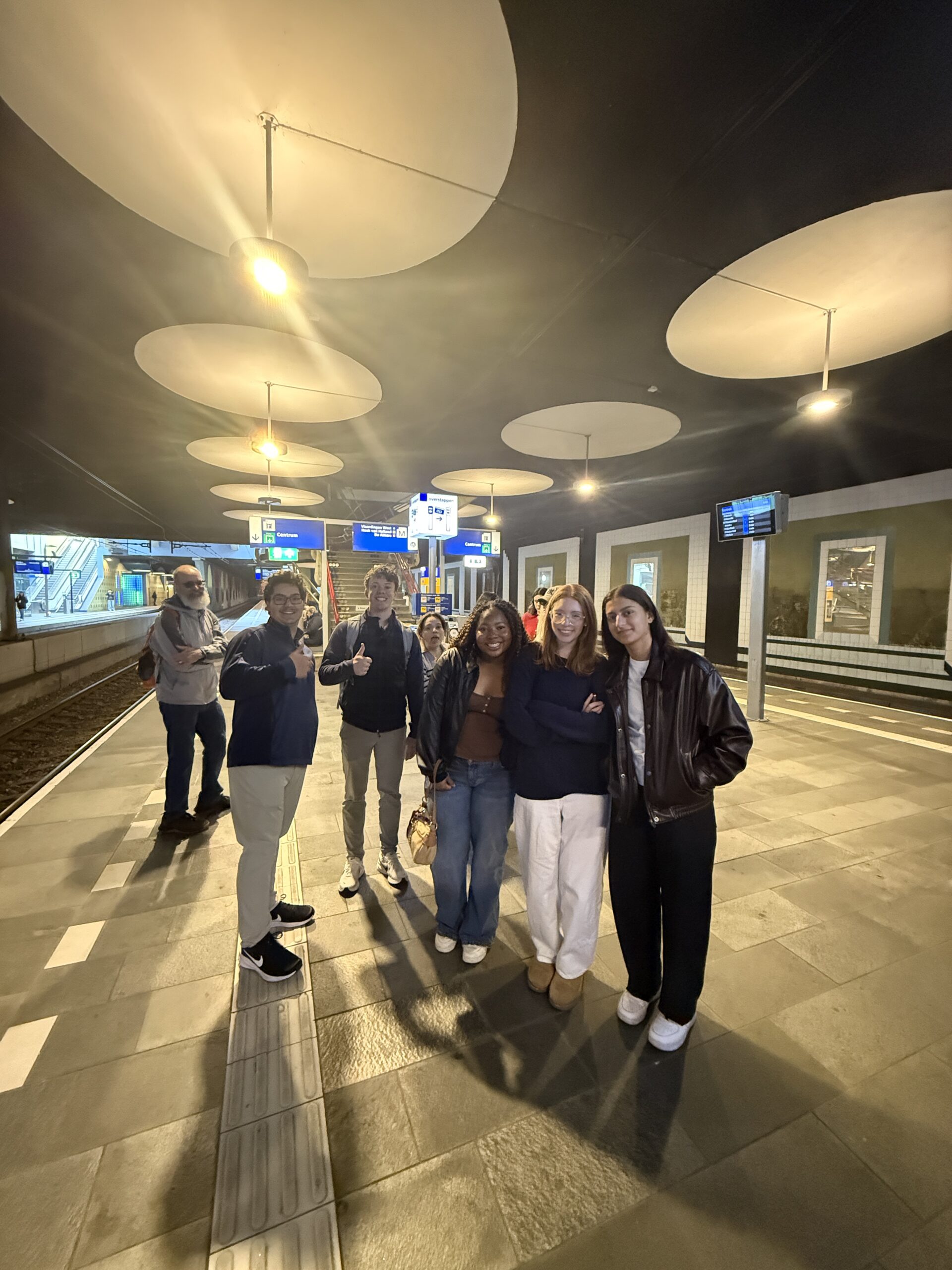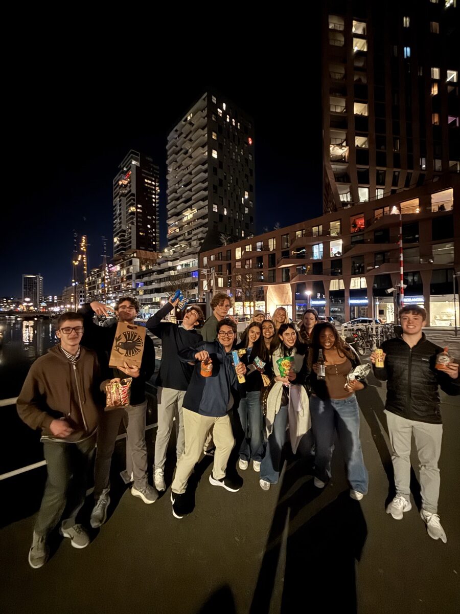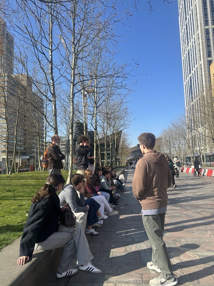 On a morning train, students crossed the border into the Netherlands, where they spent time unpacking Rotterdam’s history with a local guide. Reconstructed after losing up to 90% of the city center in a single WWII bombing, Rotterdam offered an eye-opening experience to explore the city’s unique architecture and forward-thinking urban planning. Today, Rotterdam has become a hub for startups, and our students enjoyed the exciting opportunity to connect with local leaders. The day concluded with an Indonesian Rijsttafel, a traditional meal that reflects the complex history of colonization and migration between Indonesia and the Netherlands.