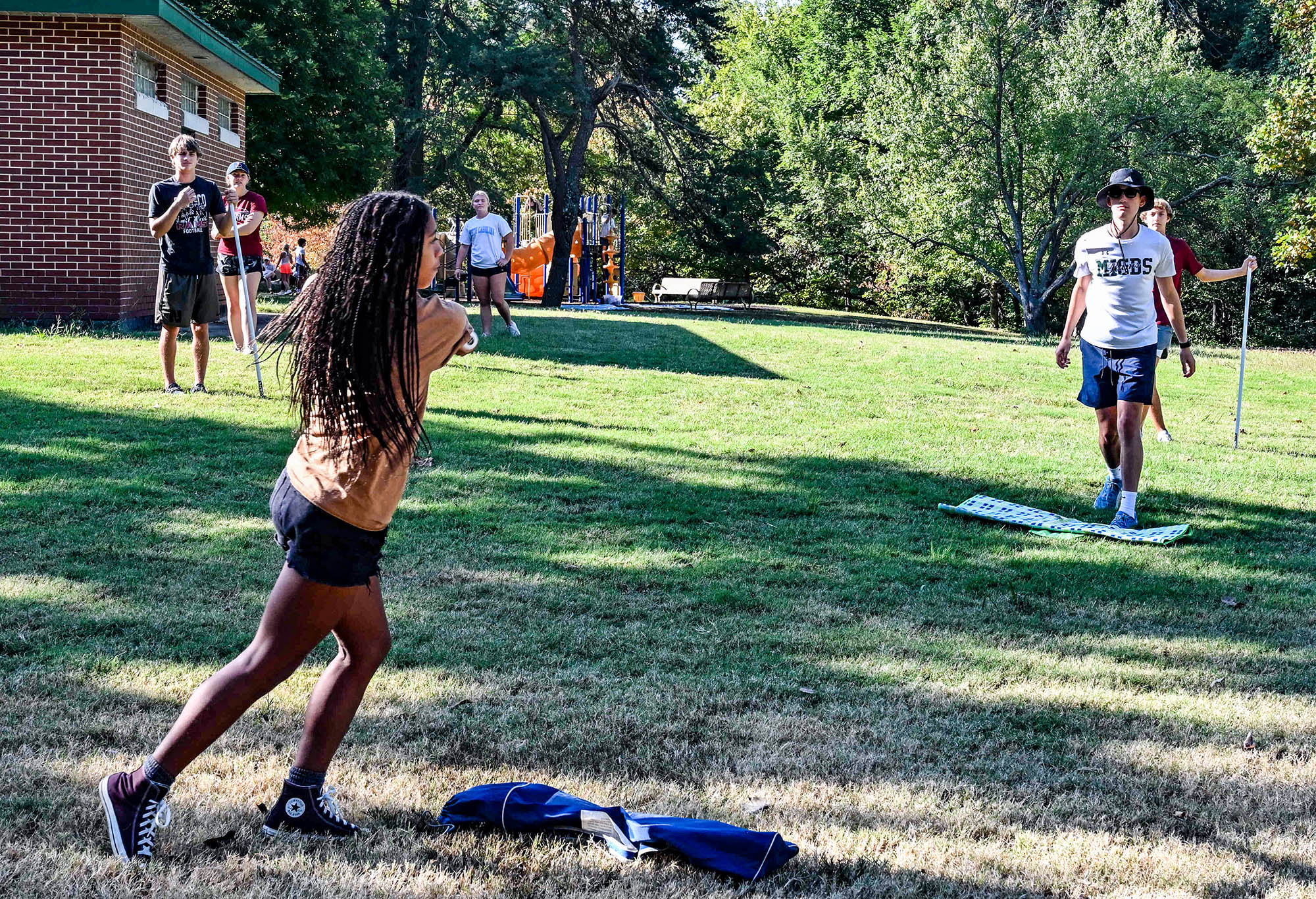 The class was divided into 10 cohorts for that day, each with two student leaders. The student leaders were responsible for guiding their group from one activity station to the next on time, transporting the small supply bag for their group from one event to the next, and taking attendance for their group at each event. In addition, they served as a positive force, encouraging their group members and cheering them on as they worked to overcome challenges.