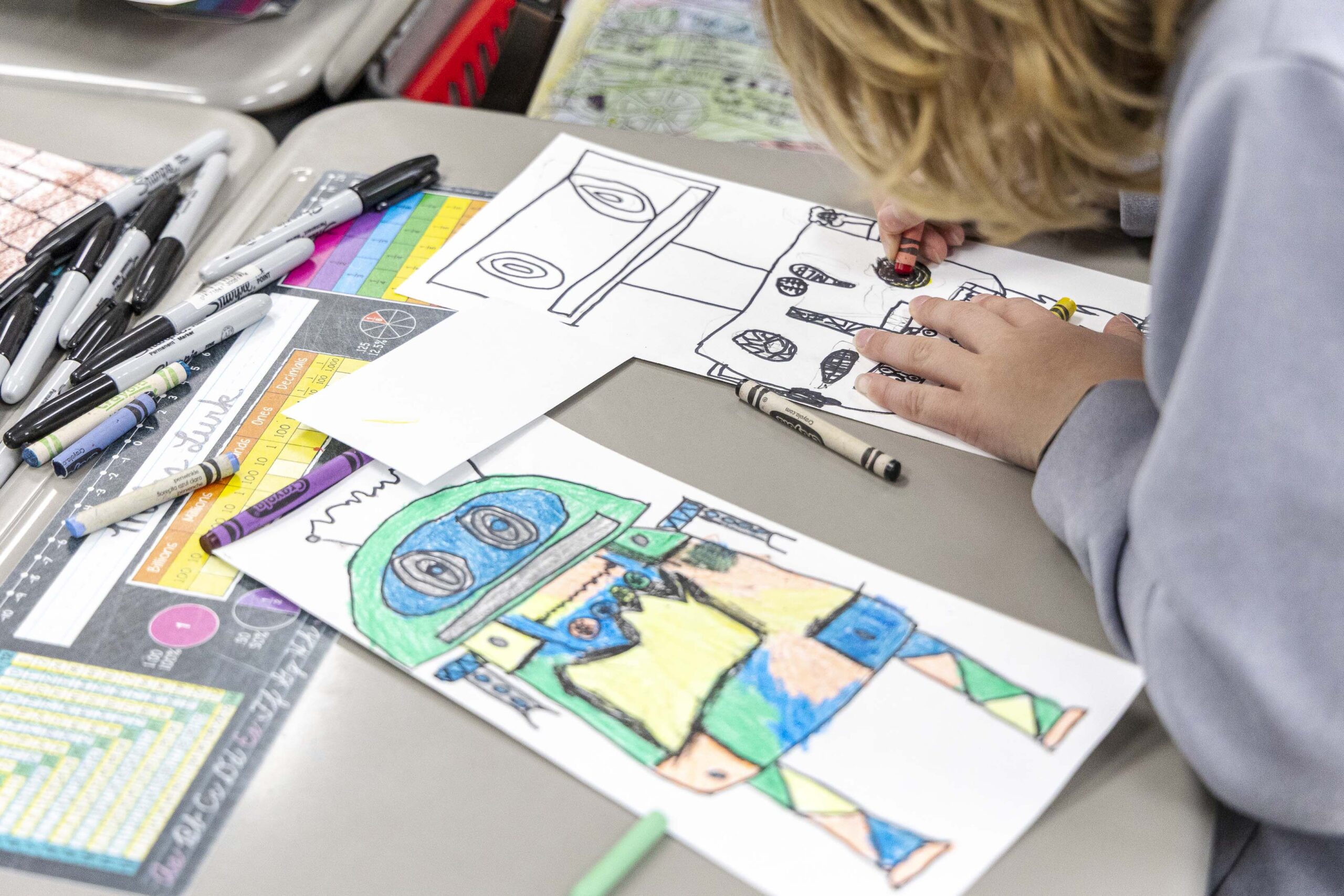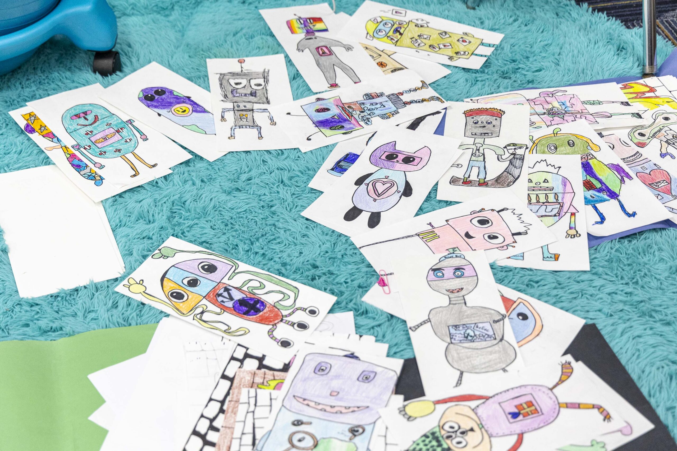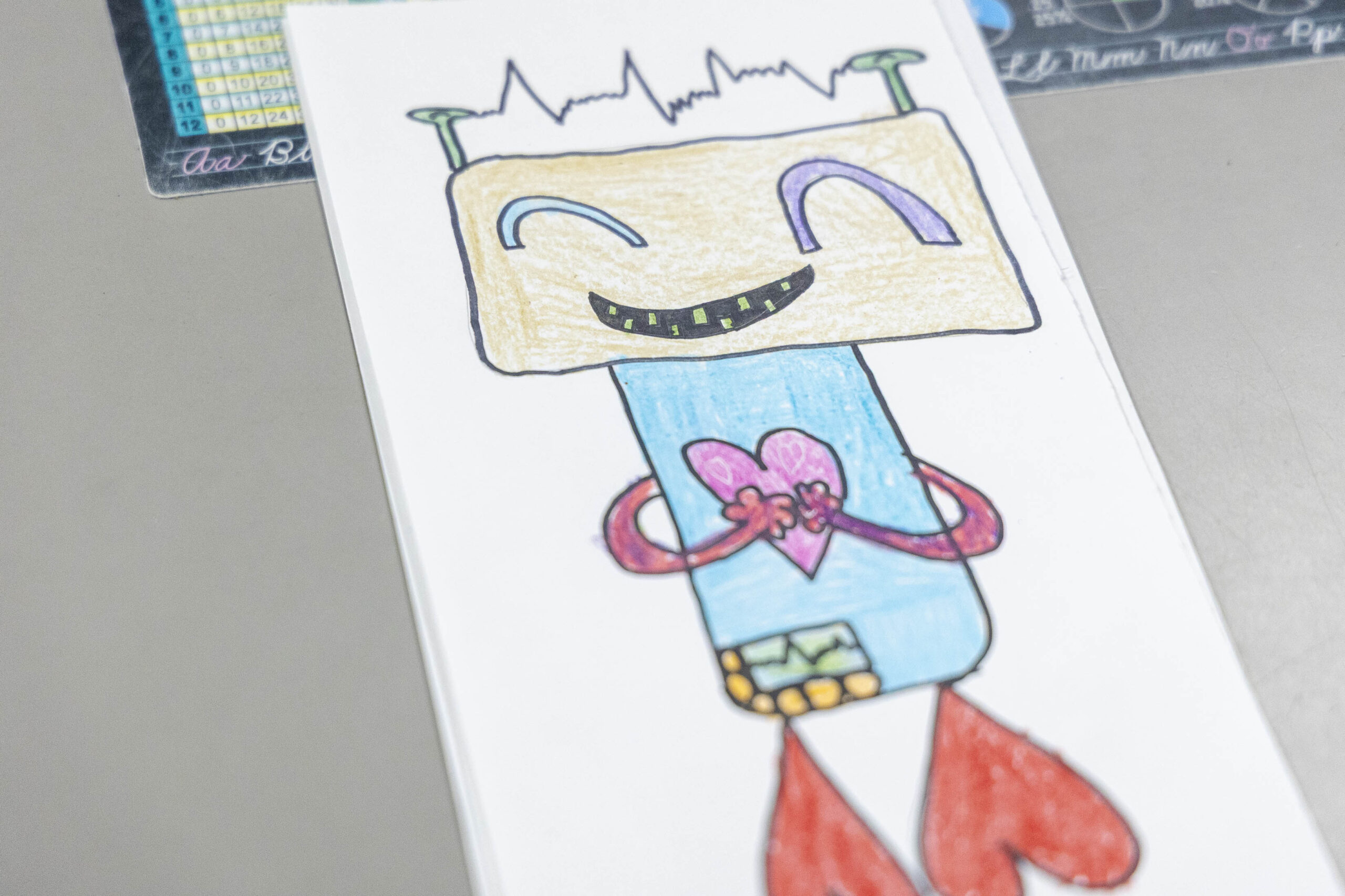 Thanks to Third Grade Homeroom Teacher Jessica Lloyd for sharing about this movement with Lower School Art Teacher Sarah Garner, our third graders have been busy drawing and coloring tiny, inspiring bots this month in art class. Each bot connects to an emotion or feeling—there’s “Brave Bot,” “Joy Bot,” “Gratitude Bot,” “Love Bot,” “Pause Bot,” “Hope Bot,” “Listening Bot,” “Caffeine Bot,” “Inspiration Bot,” and the list goes on. The Botjoy website encourages, “You can make any type of Bot that your imagination can conjure!” Students are chiseling into their creativity and empathy skills through this project.