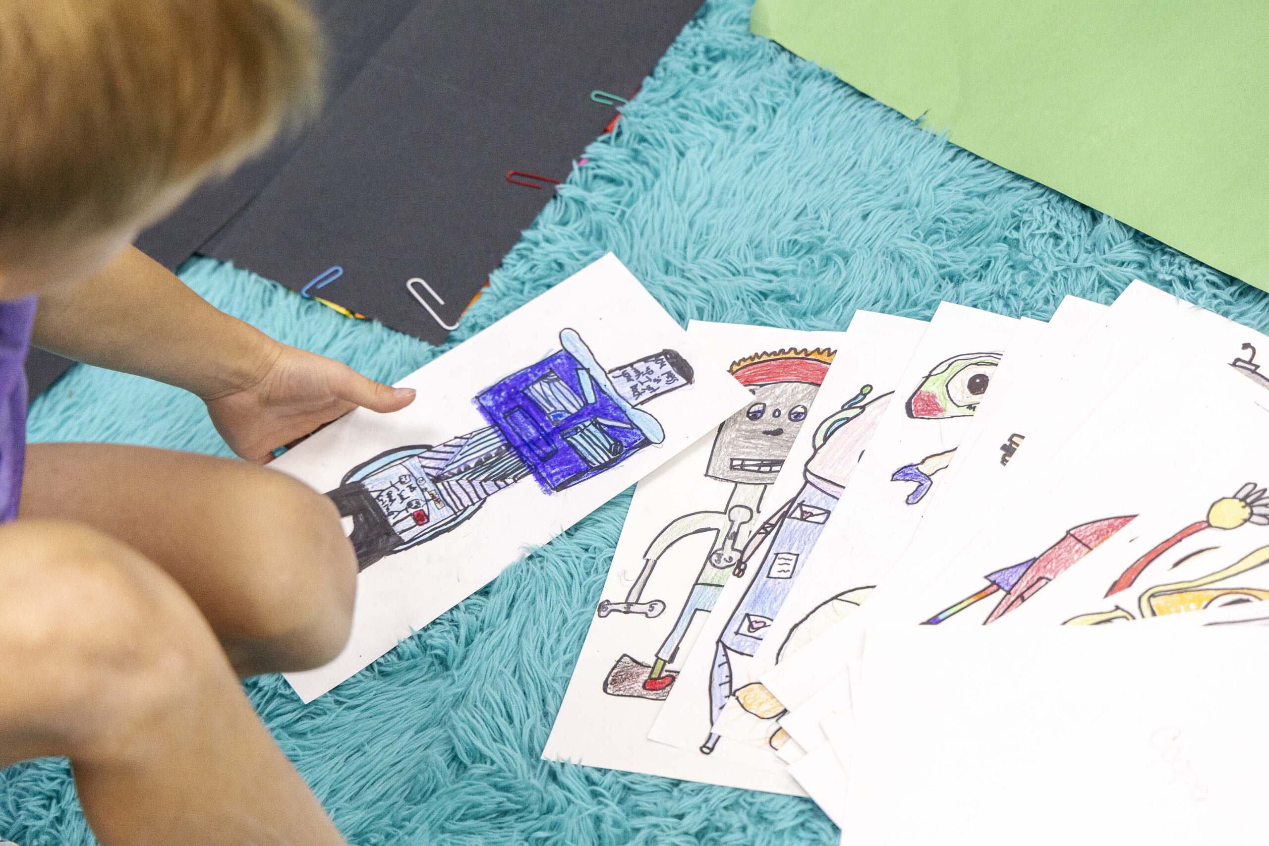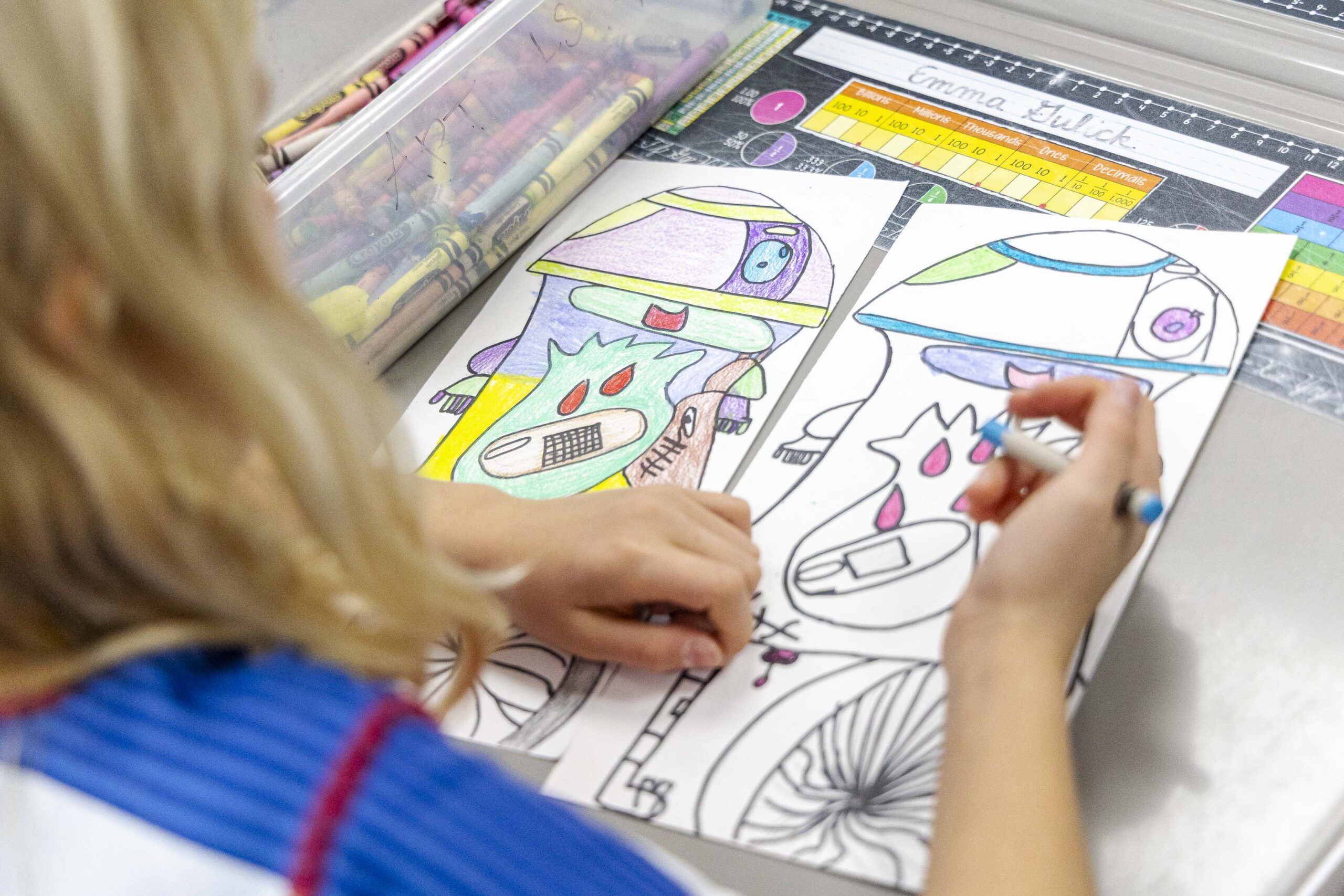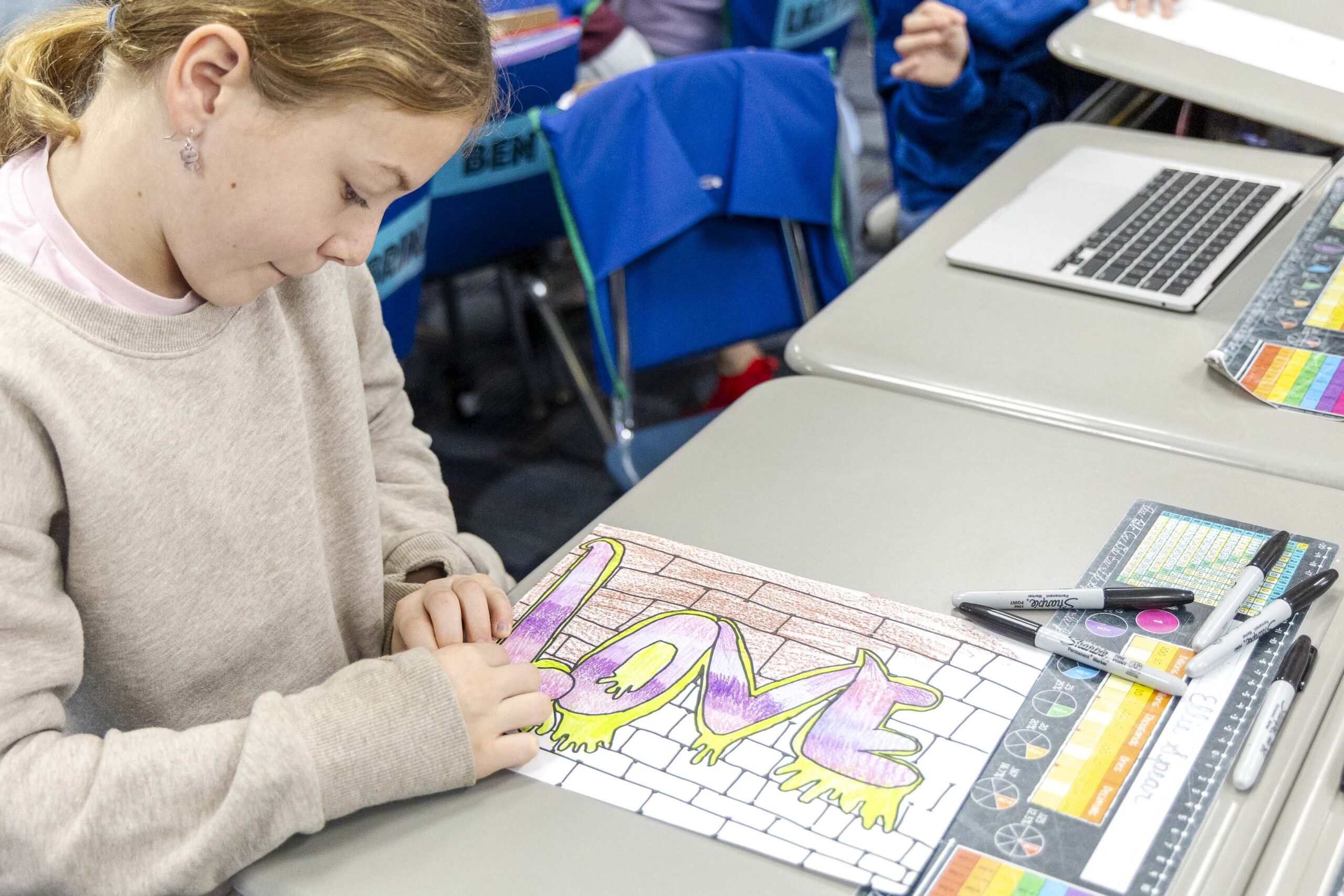 Thanks to Third Grade Homeroom Teacher Jessica Lloyd for sharing about this movement with Lower School Art Teacher Sarah Garner, our third graders have been busy drawing and coloring tiny, inspiring bots this month in art class. Each bot connects to an emotion or feeling—there’s “Brave Bot,” “Joy Bot,” “Gratitude Bot,” “Love Bot,” “Pause Bot,” “Hope Bot,” “Listening Bot,” “Caffeine Bot,” “Inspiration Bot,” and the list goes on. The Botjoy website encourages, “You can make any type of Bot that your imagination can conjure!” Students are chiseling into their creativity and empathy skills through this project.