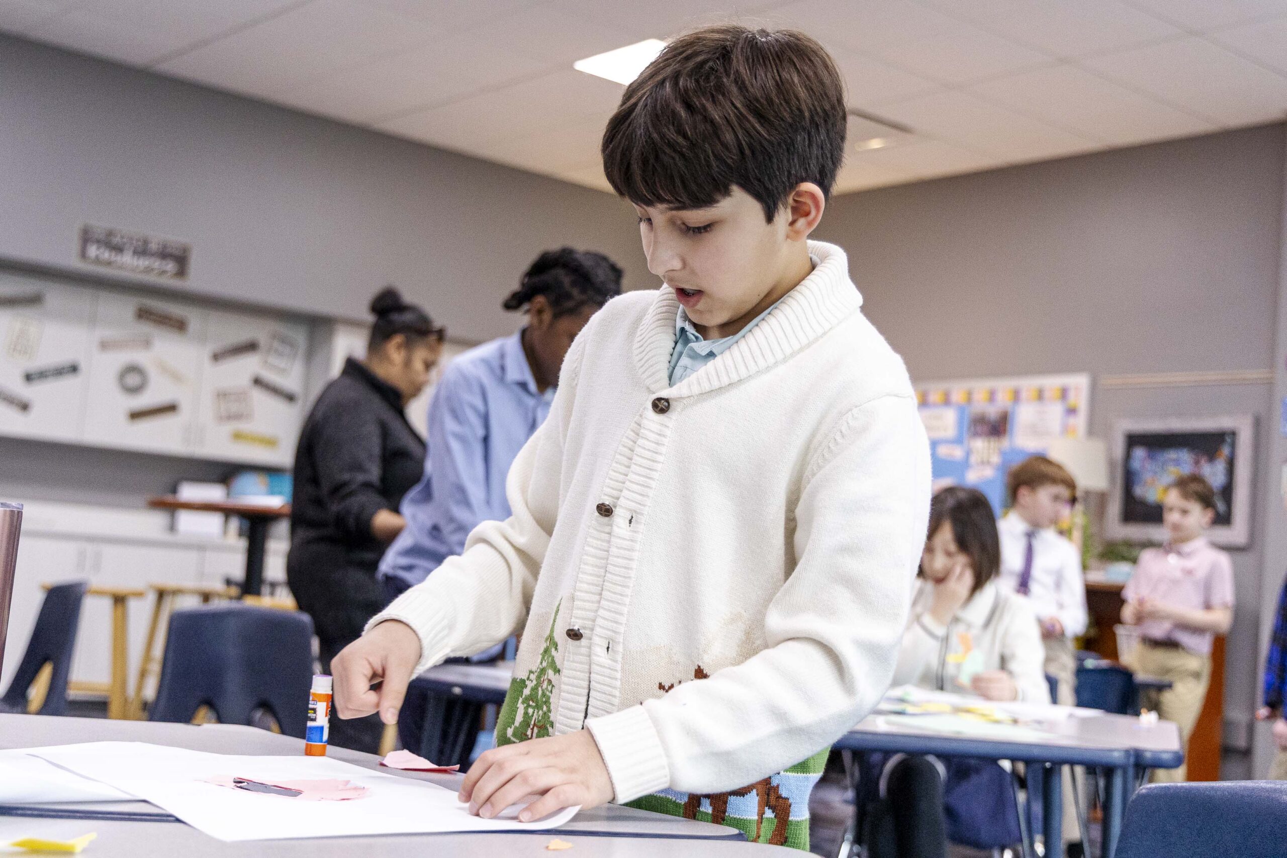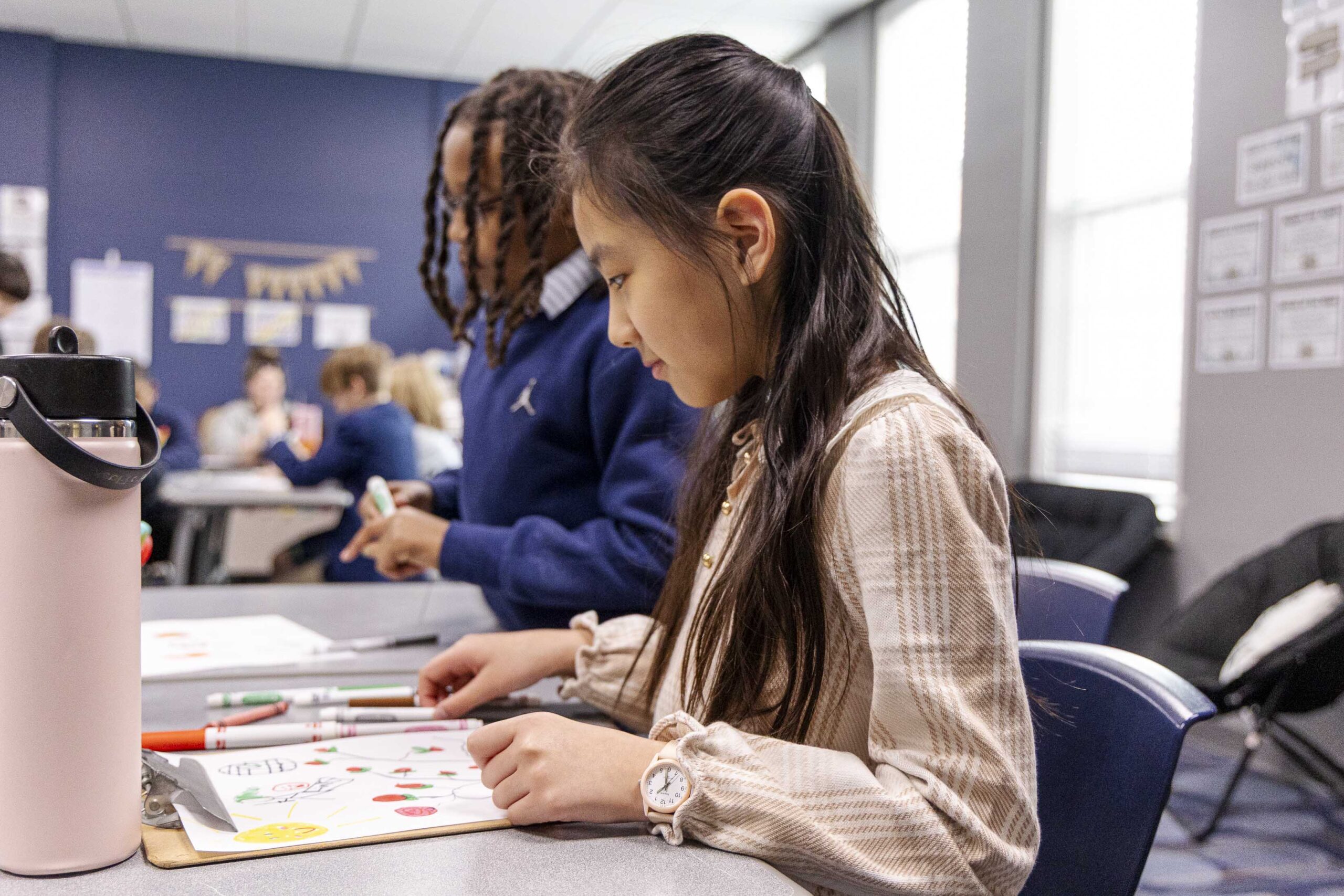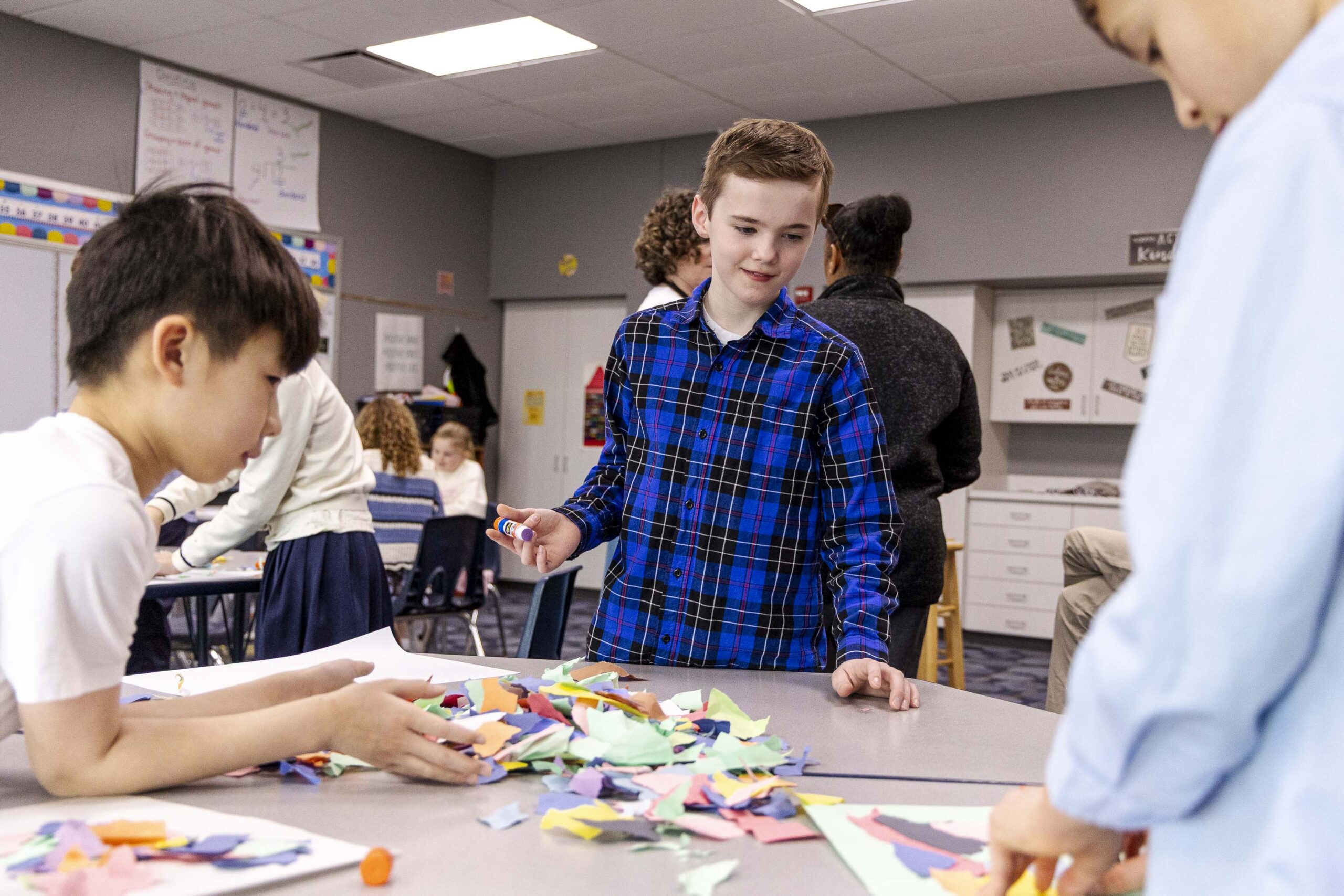 This exploration of identity continued for the fifth graders back on campus. After returning from the symphony, they spent the afternoon with hands-on art activities and attended a viewing of the seventh and eighth-grade play, Scenes from Romeo & Juliet (Sort of…Almost).