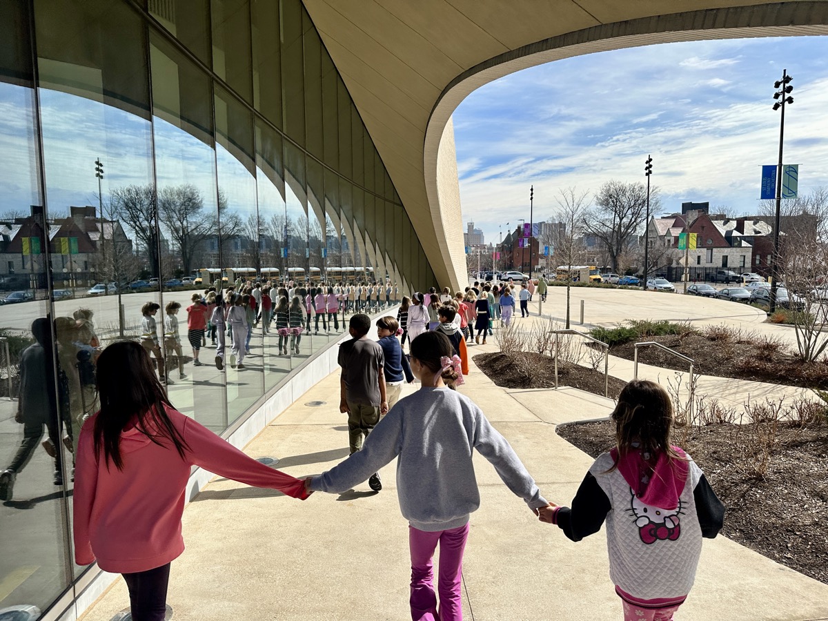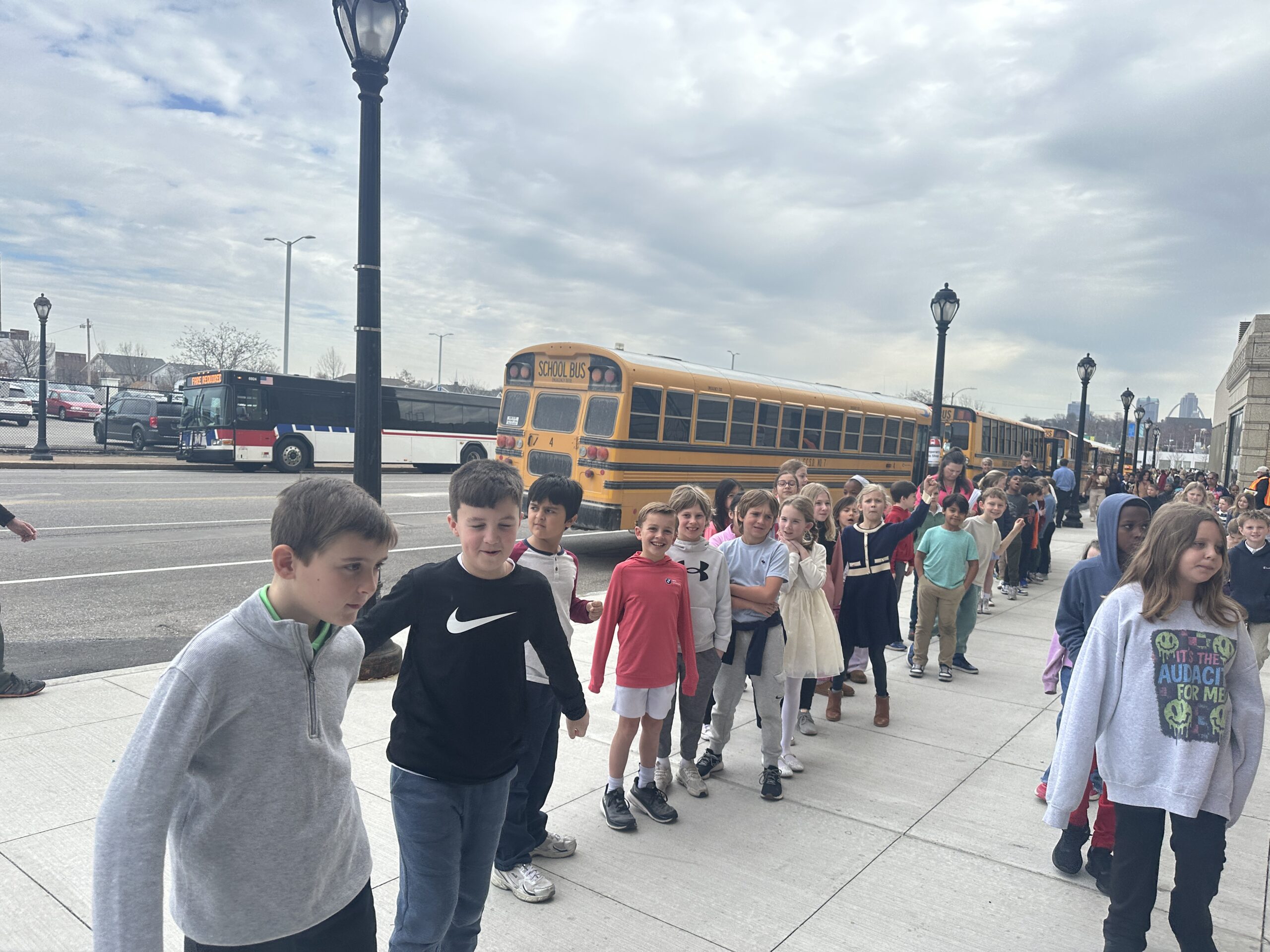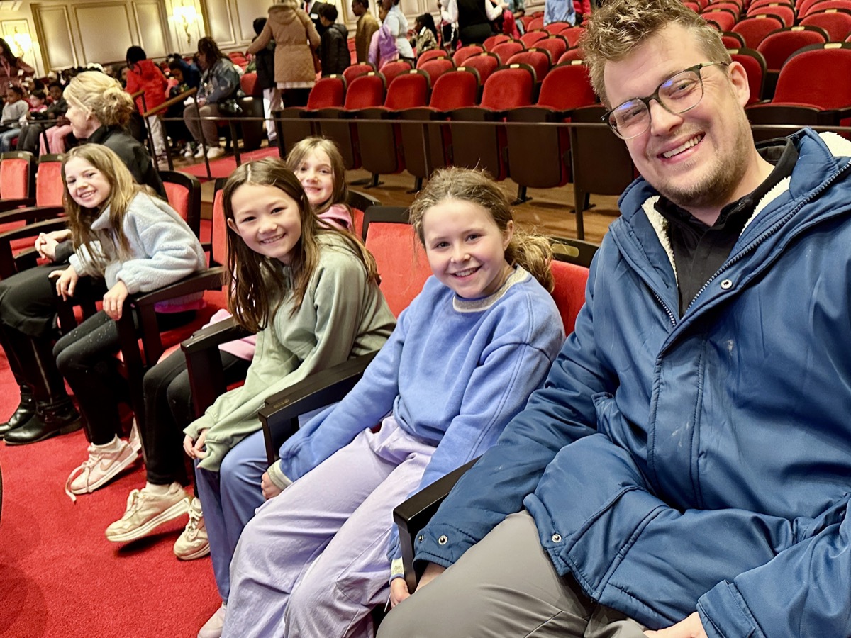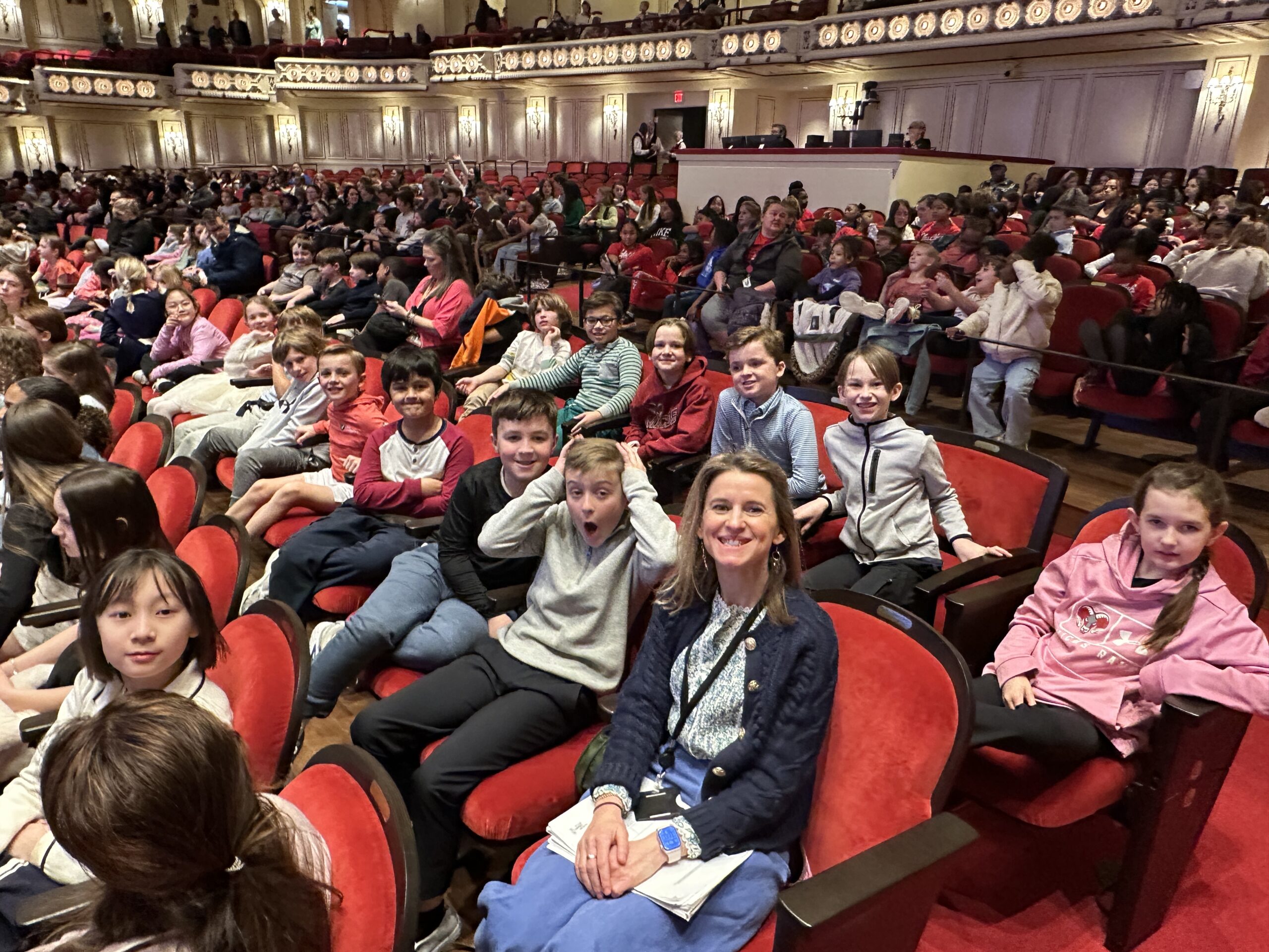 The musical immersion began even before the buses left campus. As part of a “Frosty Fun” day focused on the arts, fifth graders enjoyed an instrument show-and-tell with members of the Middle School orchestras. The older students demonstrated string, woodwind, brass, and percussion instruments, performing the pieces they are currently learning to give the fifth graders a front-row look at the world of performance.