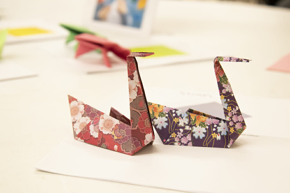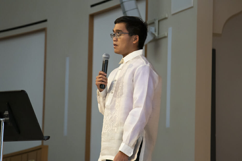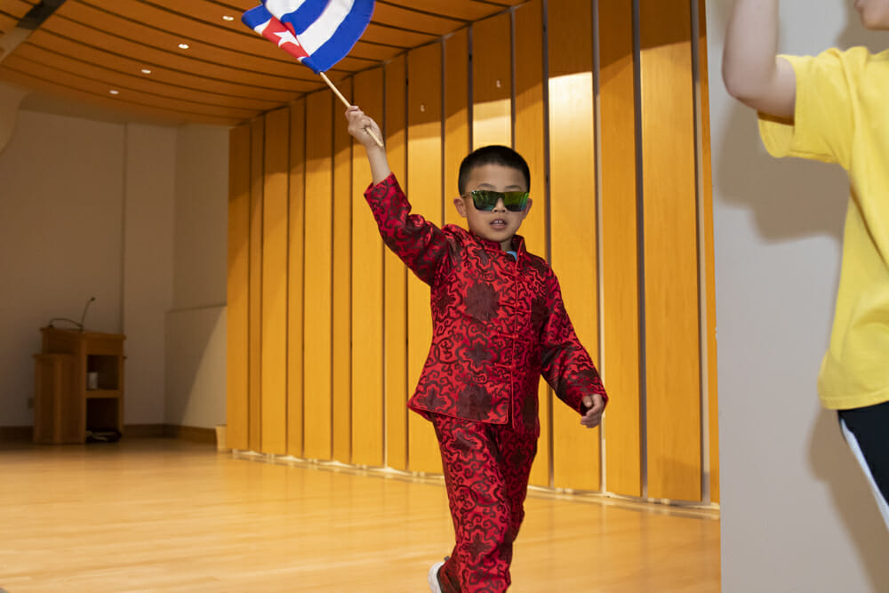 The event kicked off with a festive Parade of Nations in Brauer Auditorium. Student ambassadors flooded the stage dressed in costumes and waving flags. Then several talented Upper School students began the program with a vibrant Chinese Lion Dance. Middle and Upper School students also sang, danced, and played musical instruments before an appreciative audience.
