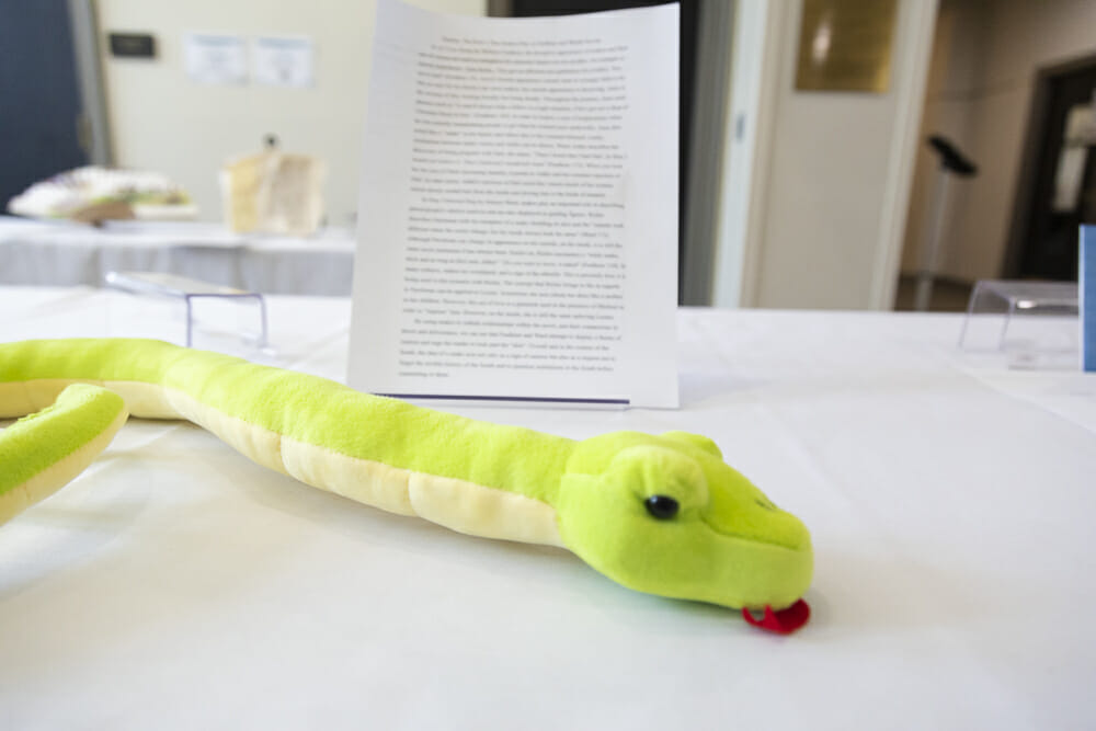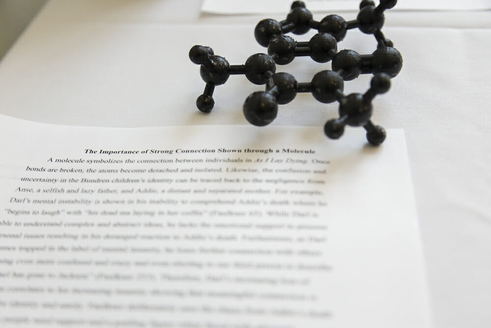 Upper School English Teachers Ryan Bueckendorf, Courtney Check, and Dr. Julia Hansen ’01 were excited to challenge the students to reflect deeply on the comparative texts. Each student displayed a one-page write-up and a small object visually representing the student’s perspective and the connection between the texts.