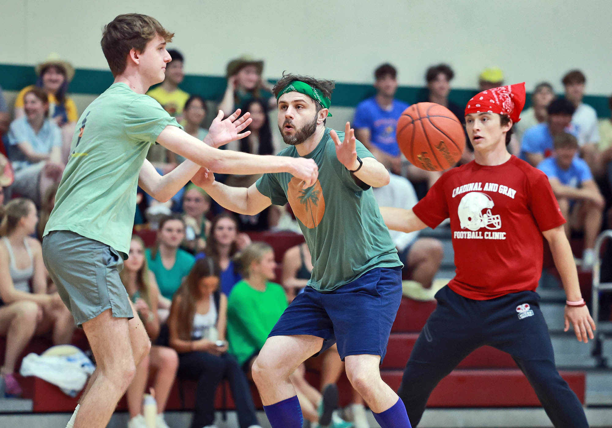 After an afternoon of rotating through the outdoor challenges, and just ahead of a passing thunderstorm, all quadrants filled the North Gym for the legendary 3-on-3 Senior vs. Faculty half-court basketball games. The seasoned faculty members bravely stepped onto the court, risking pride and perhaps a pulled hamstring, against the energetic seniors, delivering a display of grit and good humor. (Note: no teachers were harmed in these games.)