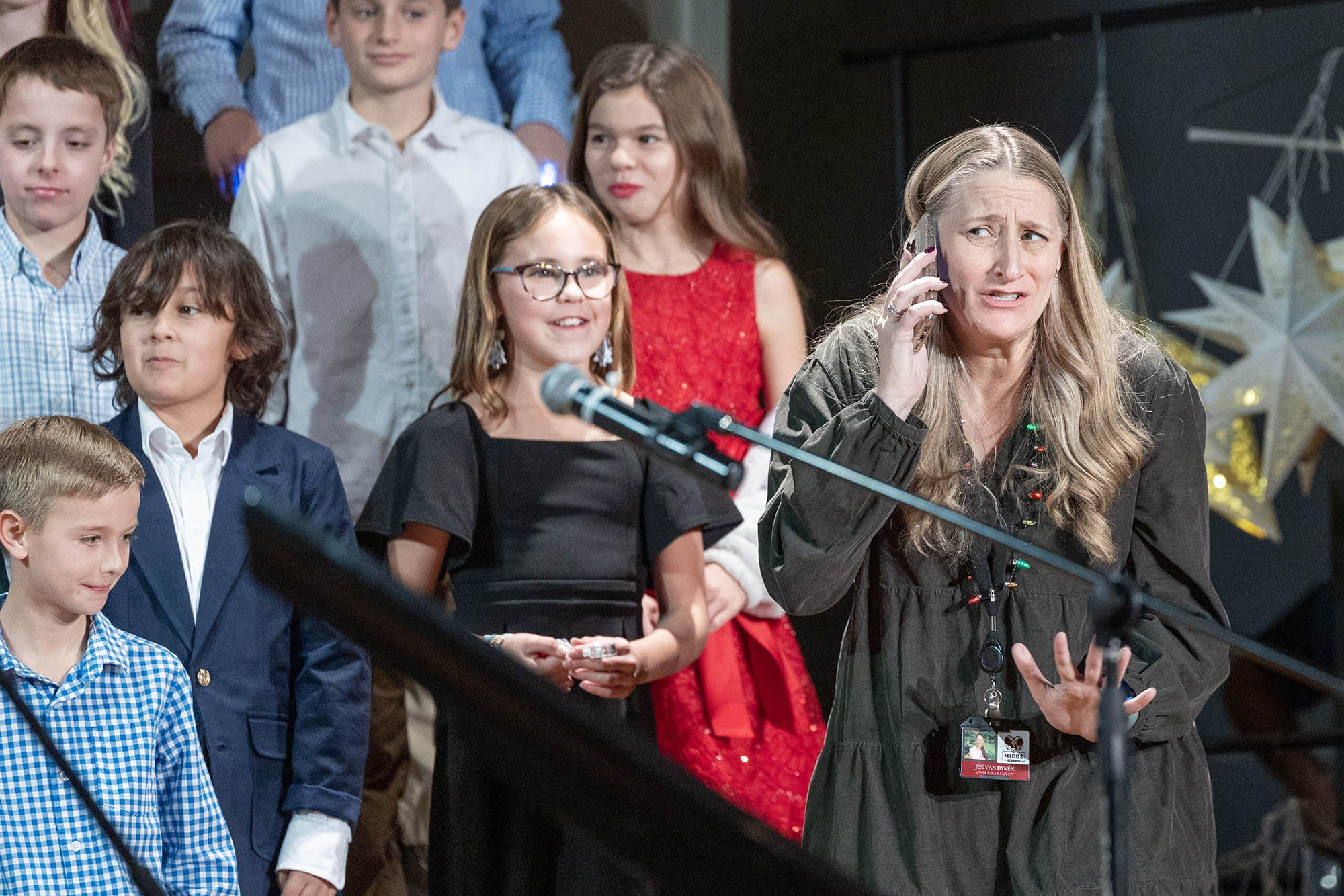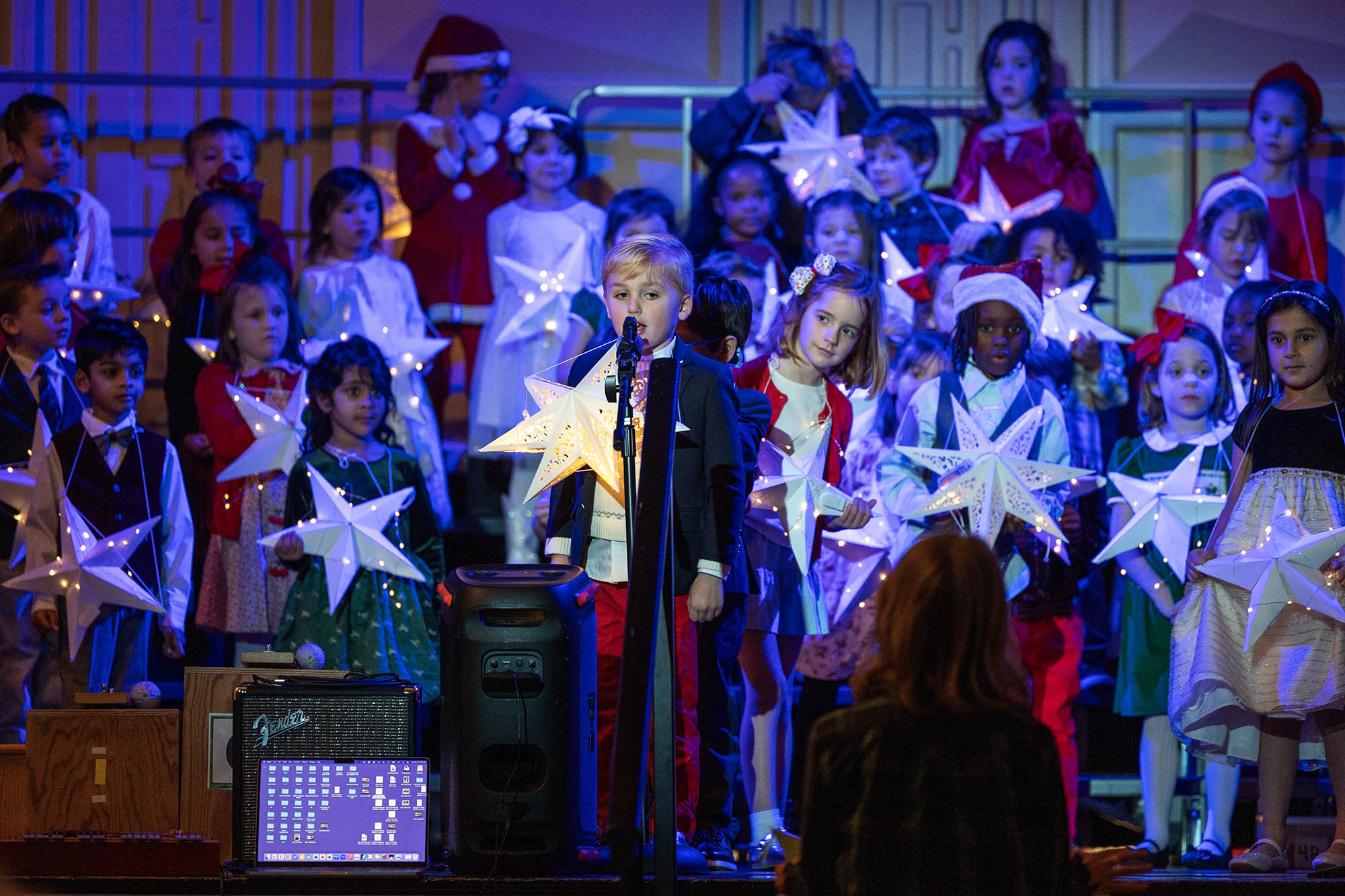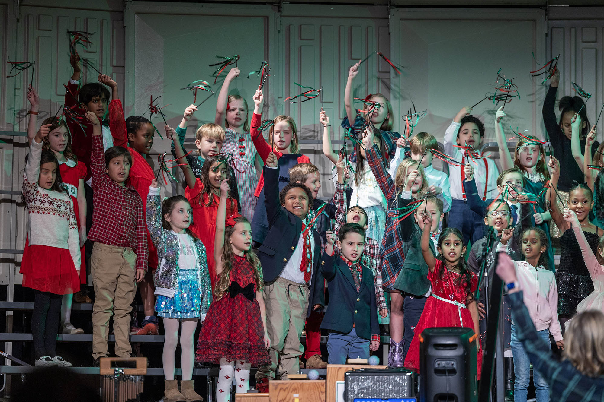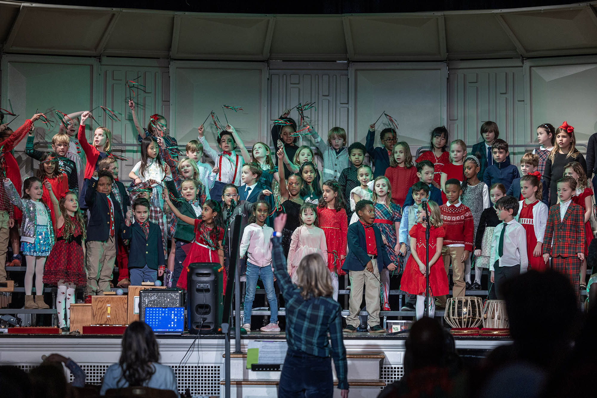 I want to thank Mrs. Garner and LS Teaching Associate Mrs. Marita Kheim for transforming stars into beautiful, wearable art, and our backstage crew: PE Teacher Mrs. Sue Orlando, LS Library Associate Mrs. Nicole Liebman, Mrs. Garner, and LS Teaching Associate Mr. Eric Kimminau, for keeping props and instruments moving smoothly. Thank you also to all of our teachers and staff who volunteered their time to support our students on and off the stage. We are grateful to our maintenance and facilities teams for setting up risers, moving instruments, and making sure everything was ready for the performance. And finally, thank you to Head of Lower School Amy Scheer, Administrative Assistant to the Head of Lower School Linda Ganss, and JK-12 Arts Chair Dr. Bonnie Carpenter for handling the logistics and behind-the-scenes details to ensure our Winter Program shone.”