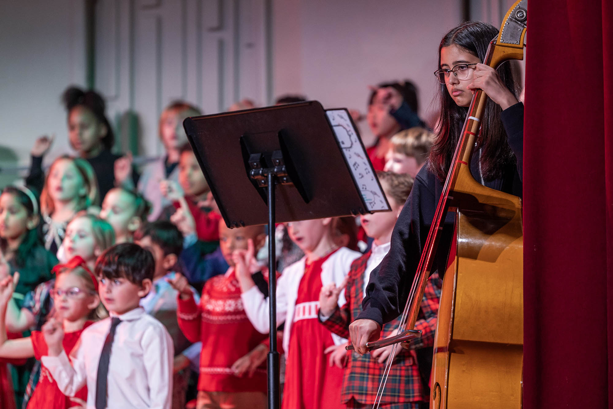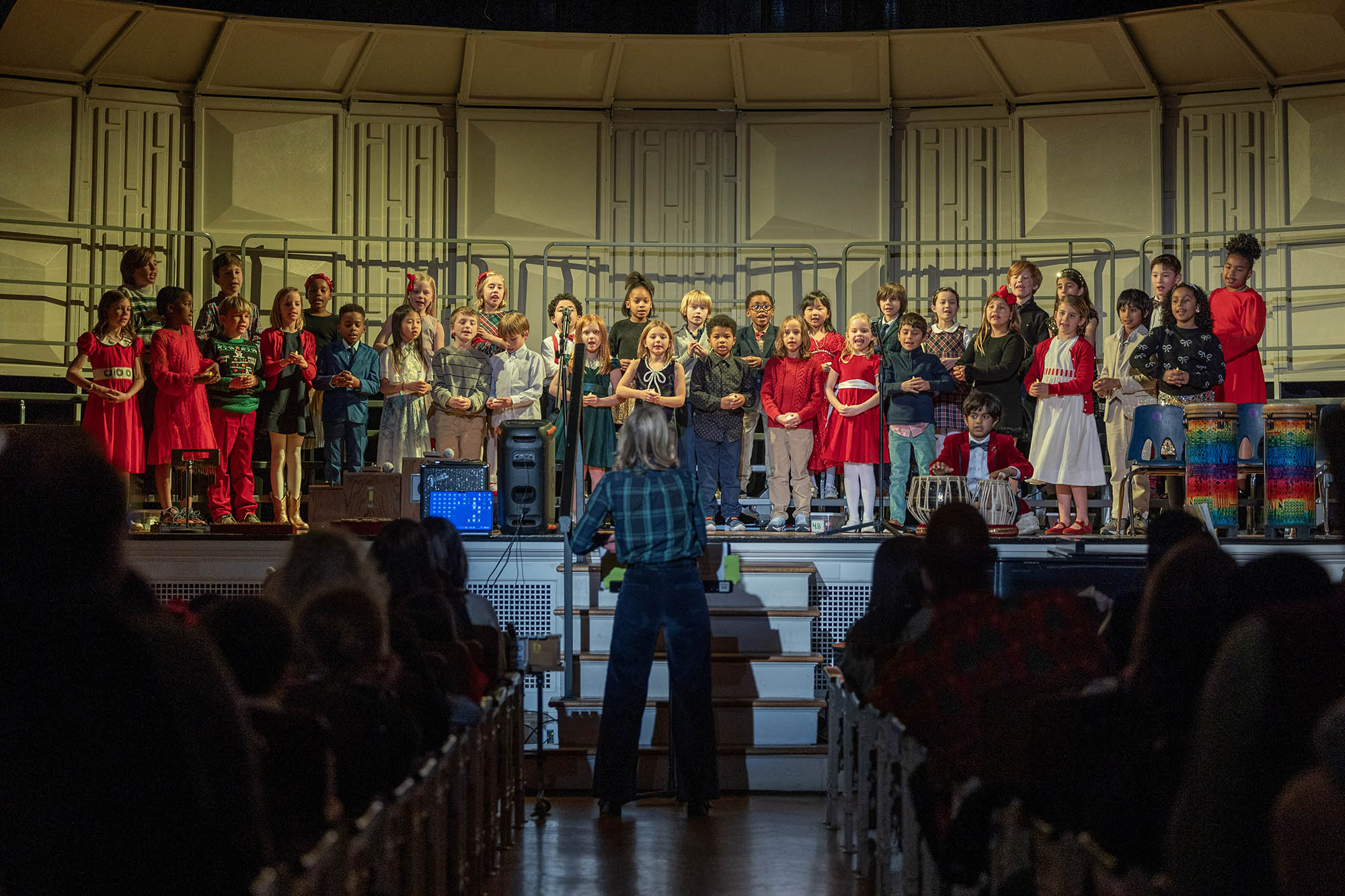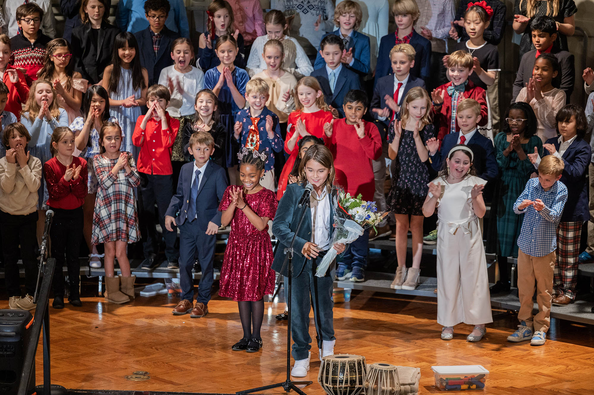 I want to thank Mrs. Garner and LS Teaching Associate Mrs. Marita Kheim for transforming stars into beautiful, wearable art, and our backstage crew: PE Teacher Mrs. Sue Orlando, LS Library Associate Mrs. Nicole Liebman, Mrs. Garner, and LS Teaching Associate Mr. Eric Kimminau, for keeping props and instruments moving smoothly. Thank you also to all of our teachers and staff who volunteered their time to support our students on and off the stage. We are grateful to our maintenance and facilities teams for setting up risers, moving instruments, and making sure everything was ready for the performance. And finally, thank you to Head of Lower School Amy Scheer, Administrative Assistant to the Head of Lower School Linda Ganss, and JK-12 Arts Chair Dr. Bonnie Carpenter for handling the logistics and behind-the-scenes details to ensure our Winter Program shone.”