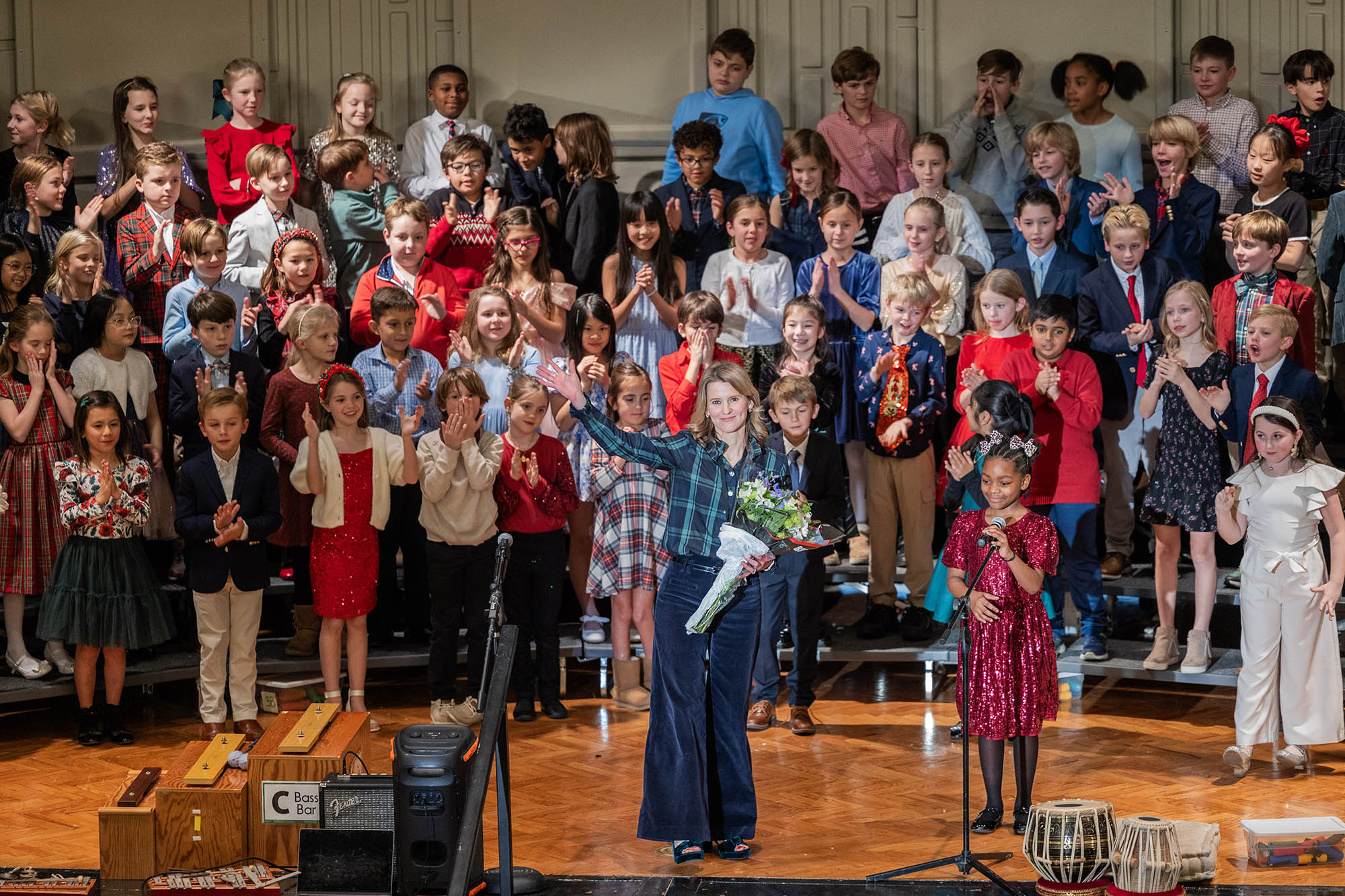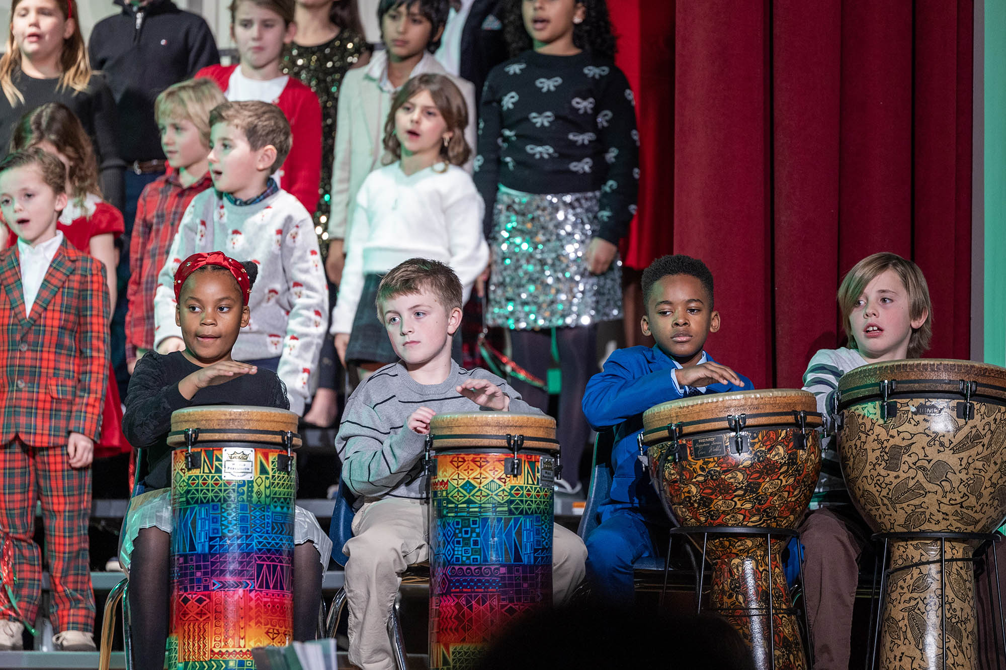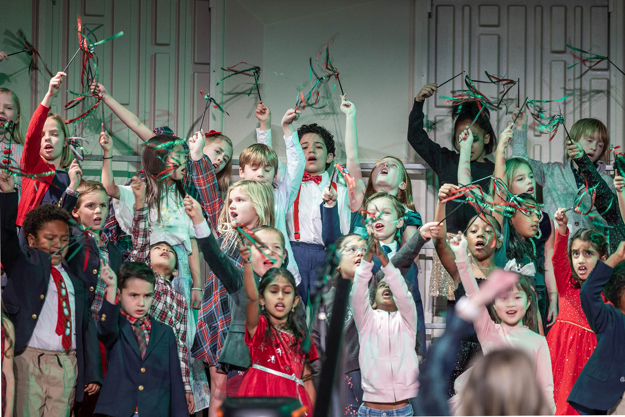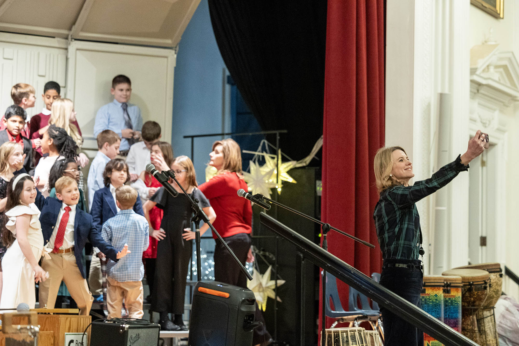 I want to thank Mrs. Garner and LS Teaching Associate Mrs. Marita Kheim for transforming stars into beautiful, wearable art, and our backstage crew: PE Teacher Mrs. Sue Orlando, LS Library Associate Mrs. Nicole Liebman, Mrs. Garner, and LS Teaching Associate Mr. Eric Kimminau, for keeping props and instruments moving smoothly. Thank you also to all of our teachers and staff who volunteered their time to support our students on and off the stage. We are grateful to our maintenance and facilities teams for setting up risers, moving instruments, and making sure everything was ready for the performance. And finally, thank you to Head of Lower School Amy Scheer, Administrative Assistant to the Head of Lower School Linda Ganss, and JK-12 Arts Chair Dr. Bonnie Carpenter for handling the logistics and behind-the-scenes details to ensure our Winter Program shone.”