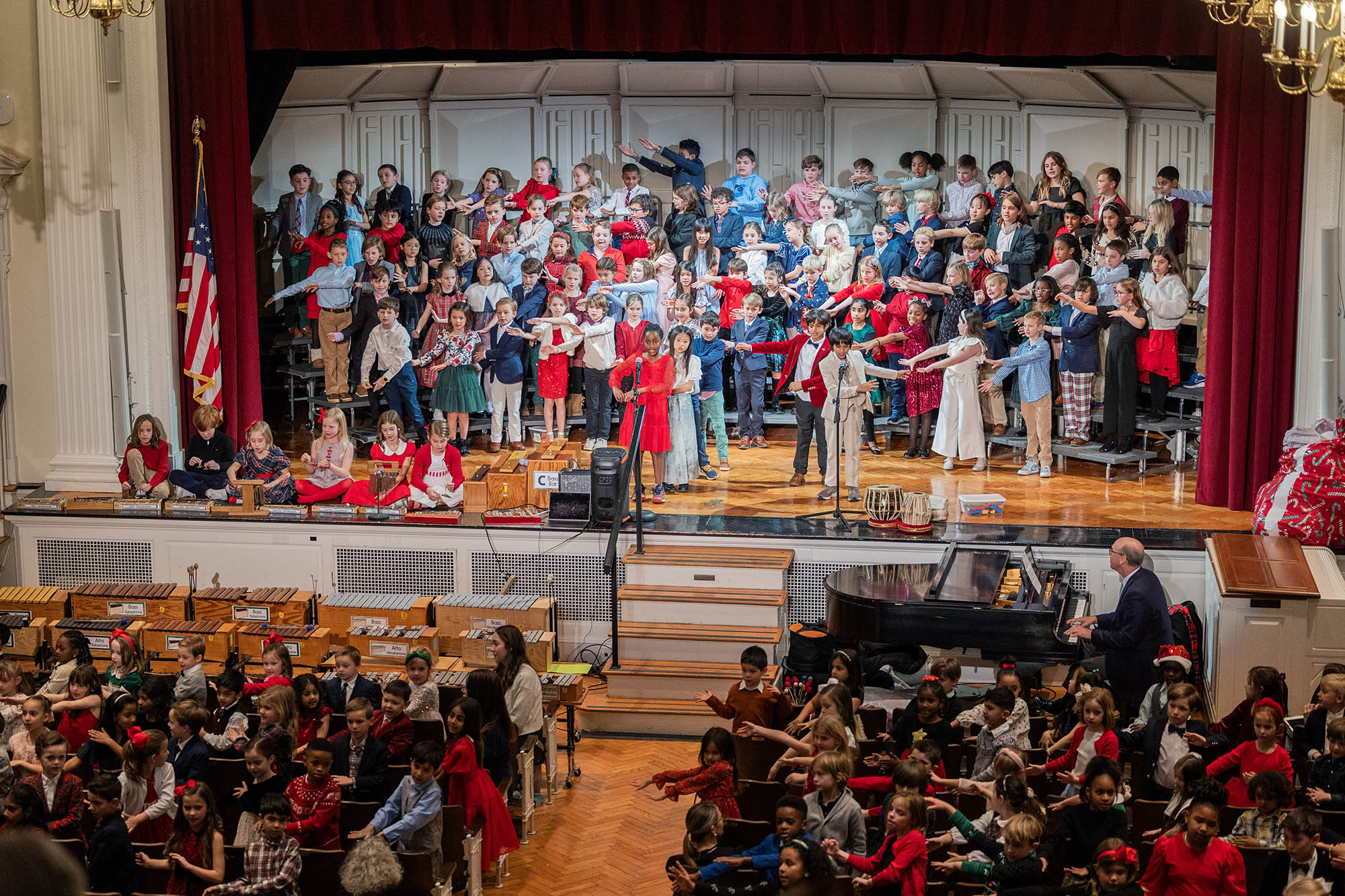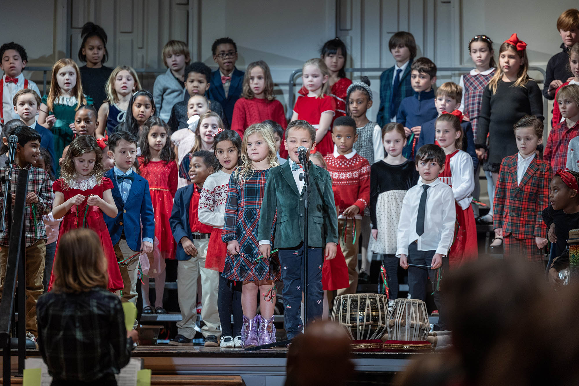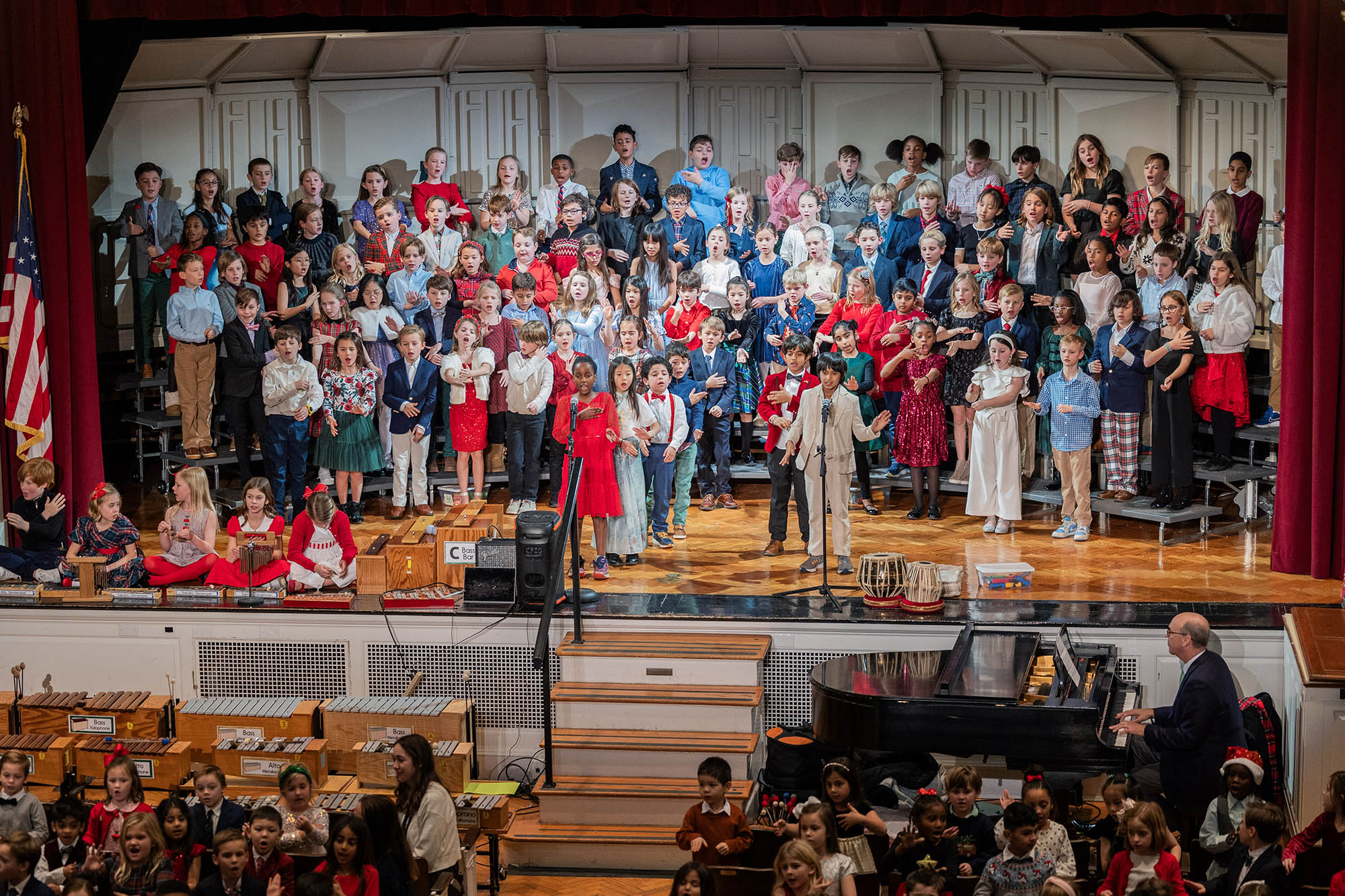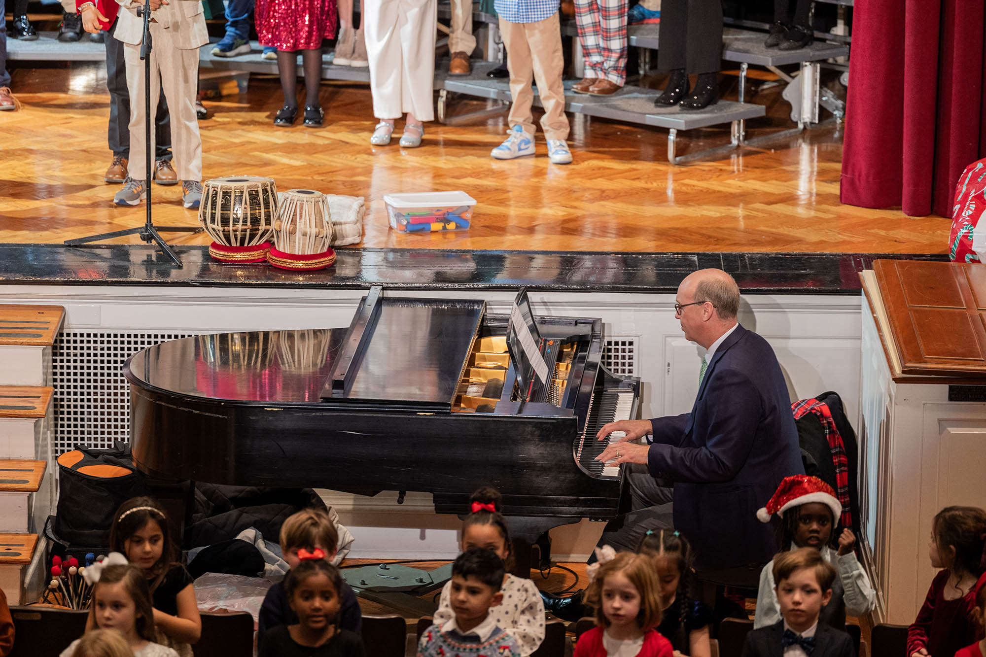 Finally, it was time for the last song, a Beasley tradition that involves all Lower School students. They sang Circle the Earth (with Peace), accompanied by special guest Head of School Jay Rainey on piano.