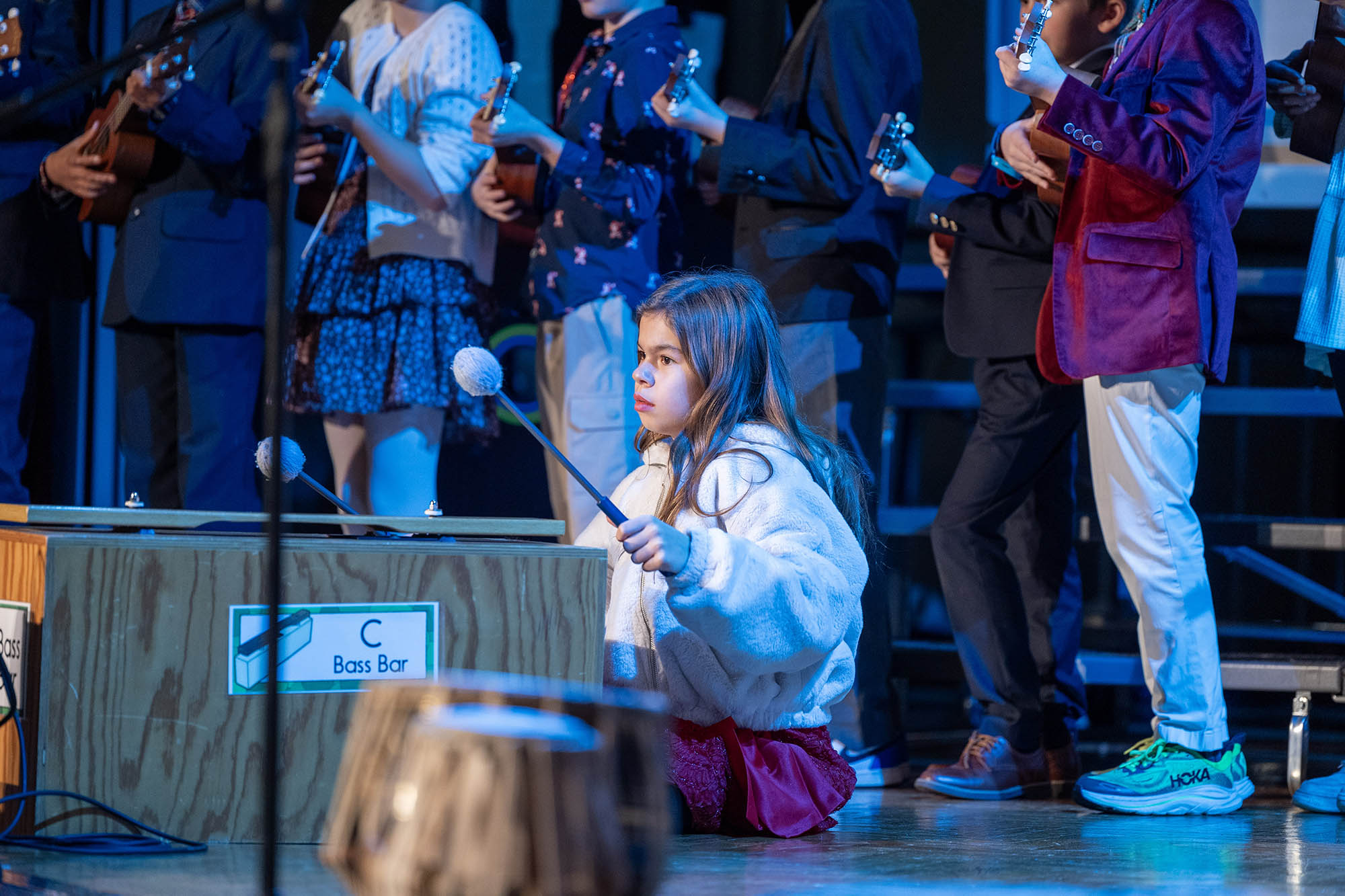 “Our students worked incredibly hard to bring this program to life,” said Dr. Nichols. “Every child memorized music and choreography, some learned speaking parts, and a few bravely stepped in for friends who were sick at home. All of our students learned how to perform as ensembles, singing in unison, and our first through fourth graders even leveled up to singing in two parts. They also took on some impressive instrumental challenges.