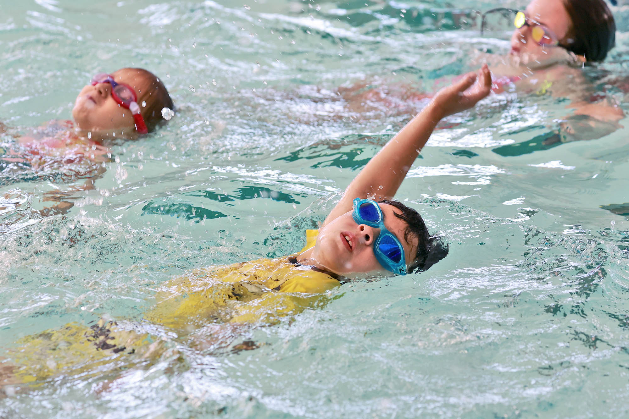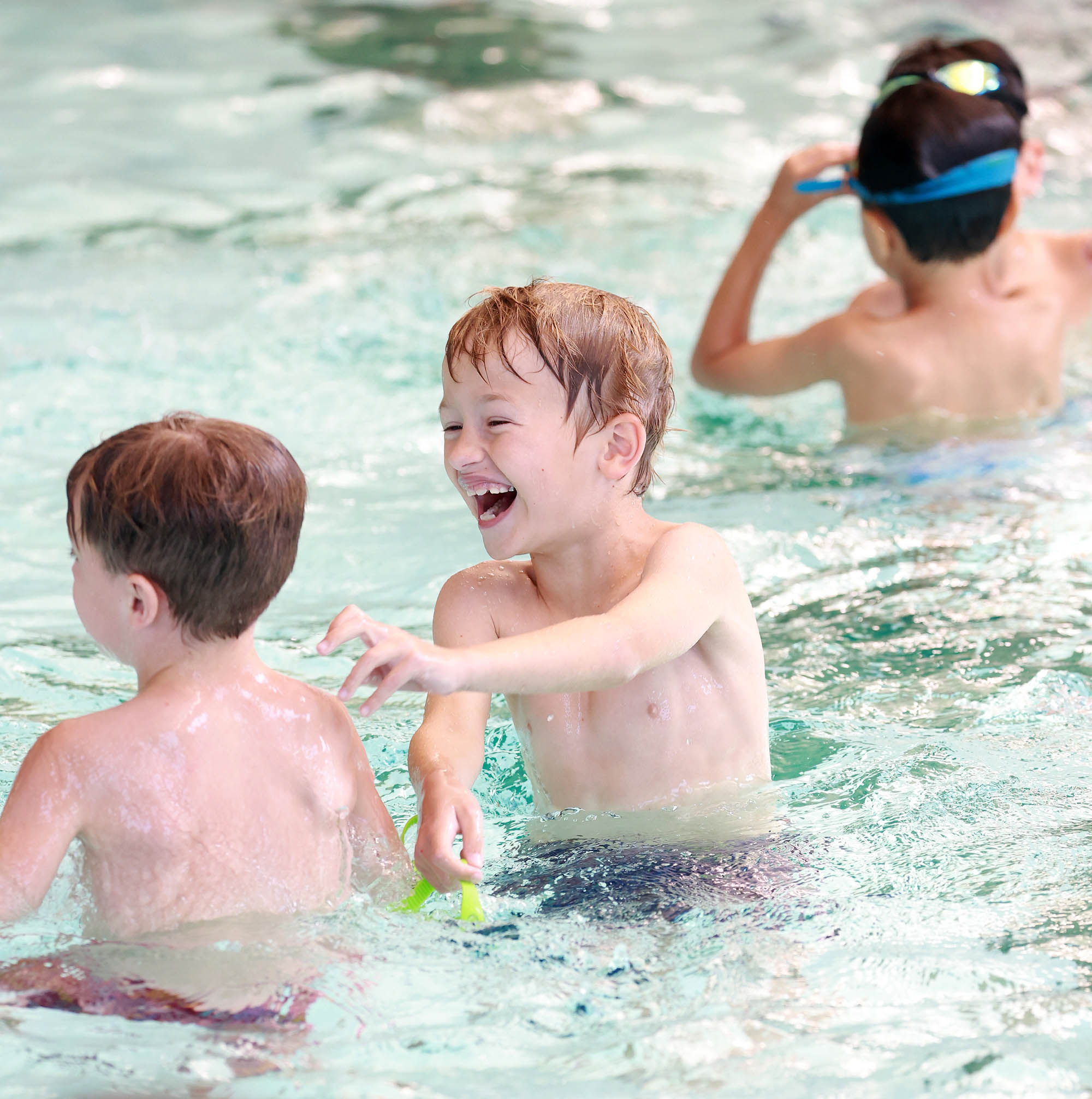 - Daily P.E. games and indoor swimming instruction (Note that our indoor aquatics facility allows for a portion of the floor to be raised to accommodate our newest swimmers.)